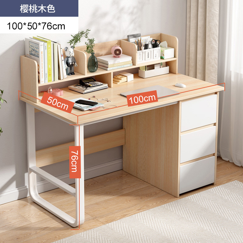 [reinforced three drawers] 100*50 with bookshelf cherrywood color: large desktop thick plate