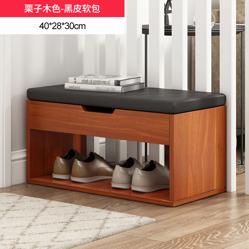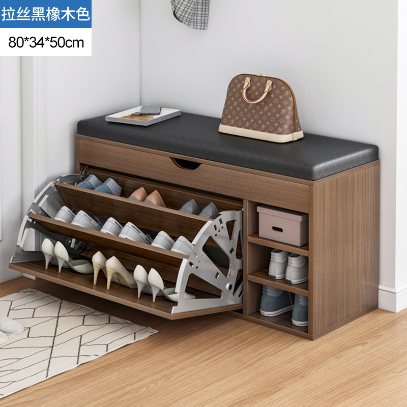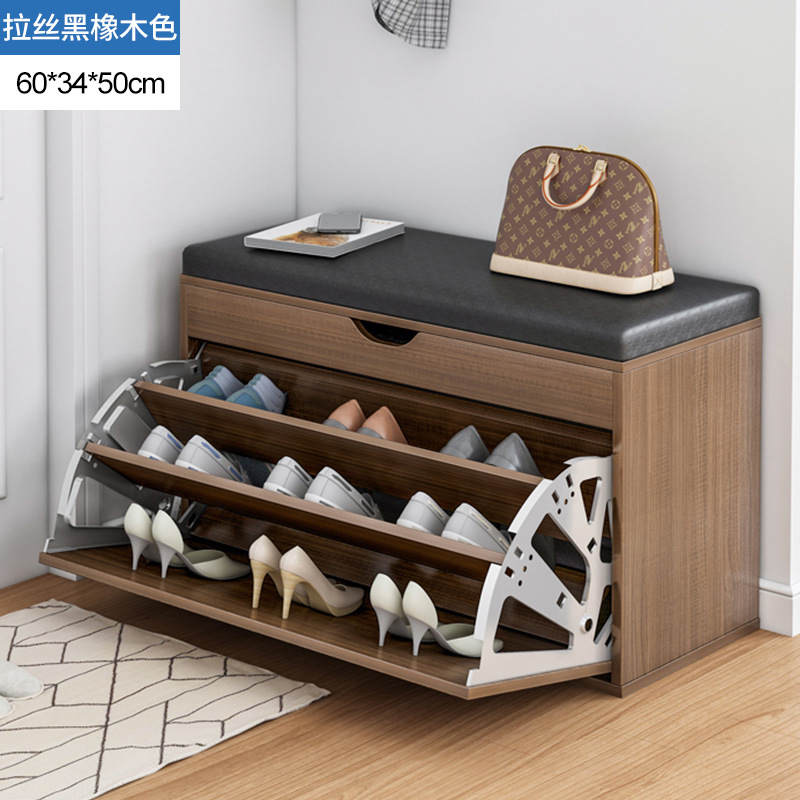 brushed black oak + black leather cushion 60cm: dual-use large capacity