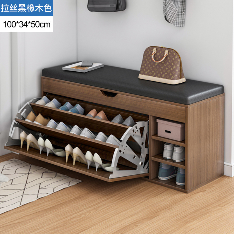 brushed black oak + black leather cushion 100cm: dual-use large capacity