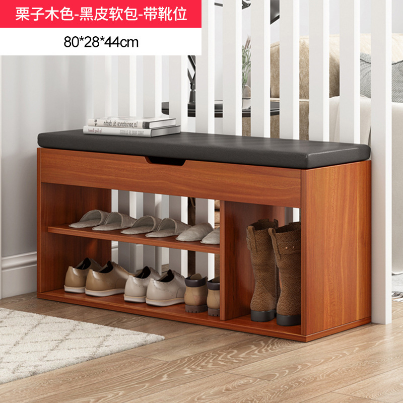 brushed black oak + black leather cushion 80cm: dual-use large capacity