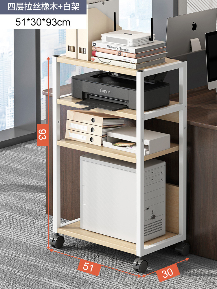 four-layer brushed oak + white rack: layered storage stable load bearing