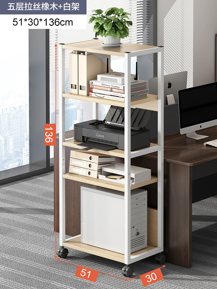 five-layer brushed oak + white rack: layered storage stable load bearing