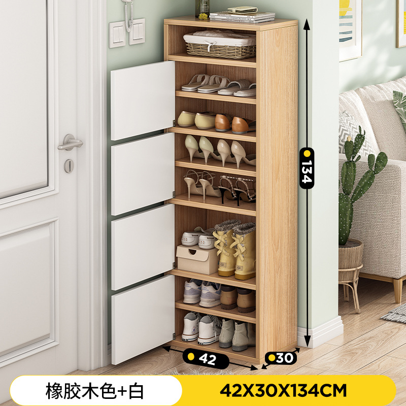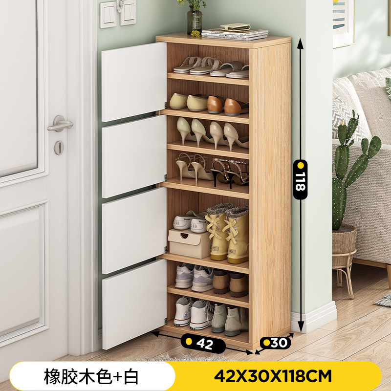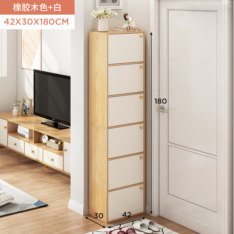rubber wood color + white 42*30*118: multi-layer storage closed cabinet