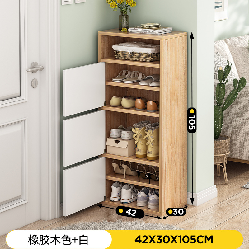 rubber wood color + white 42*30*105: multi-layer storage closed cabinet