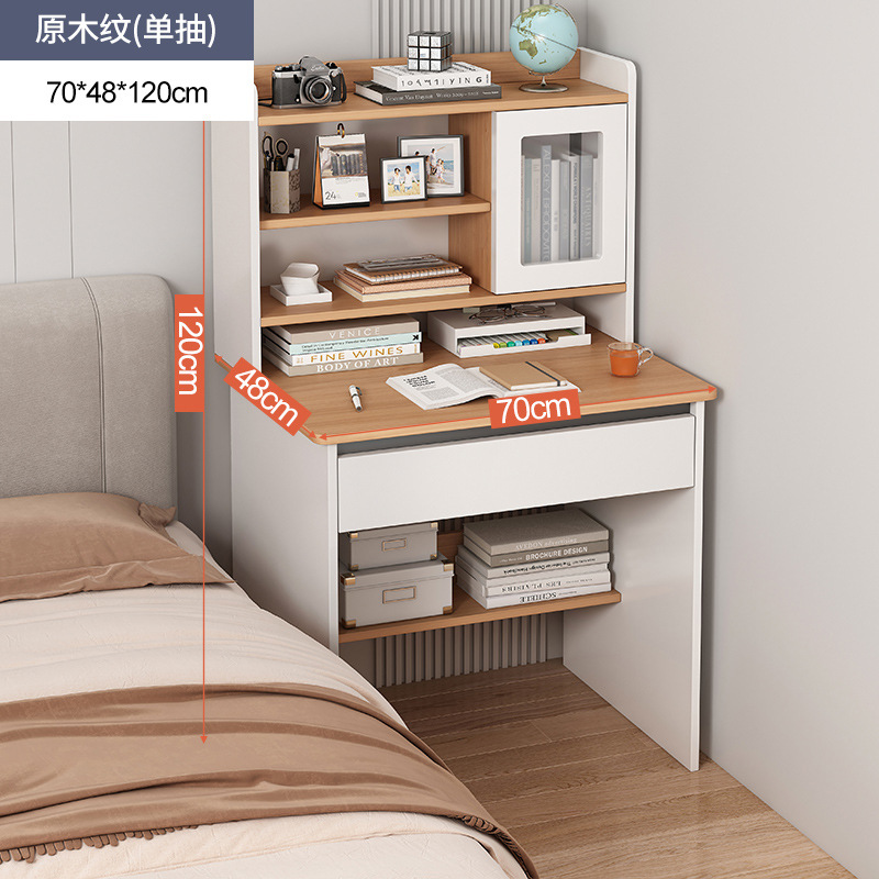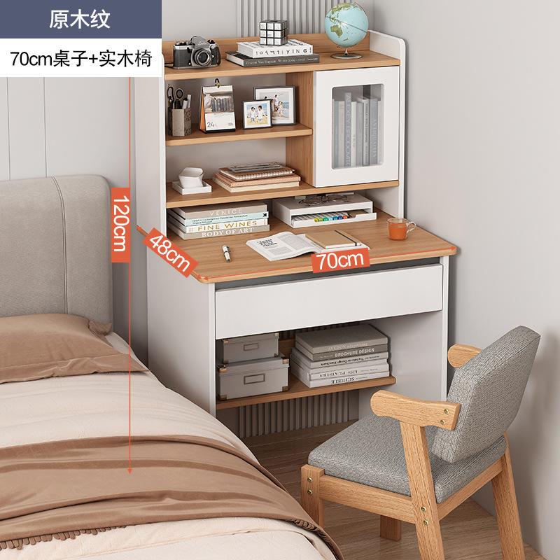 70cm antique wood grain single table + solid wood chair: layered bookshelf full board table leg