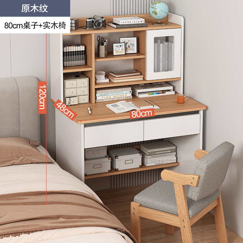 80cm antique wood grain single table + solid wood chair: layered bookshelf full board table leg