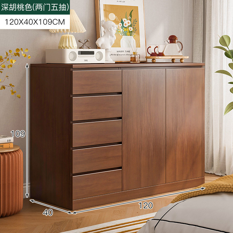 [two doors and five drawers] 120x40x109cm deep walnut color: table storage multi-layer drawer