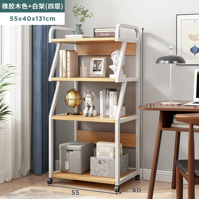 four-layer rubber wood color + white: multi-layer storage thickened steel frame