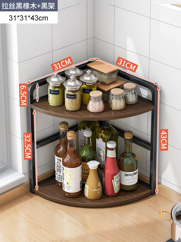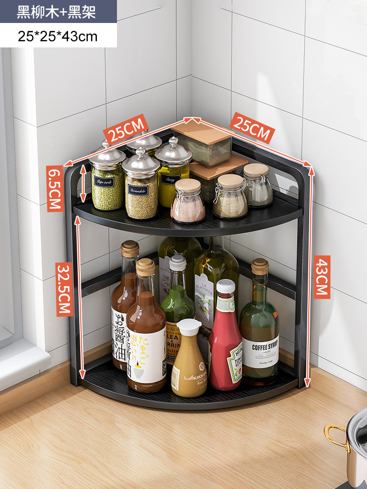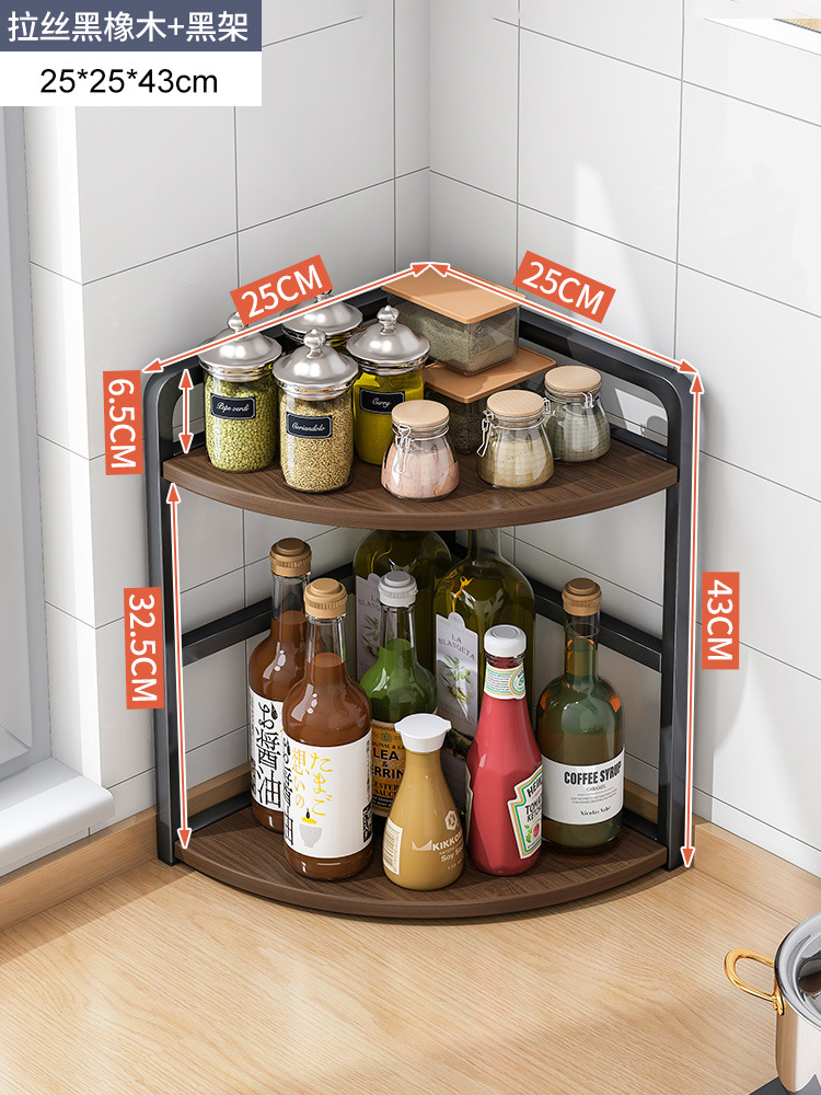 [rounded corner] two-layer brushed black oak + black frame 25 x25x43cm: multilayer storage occupies small ground