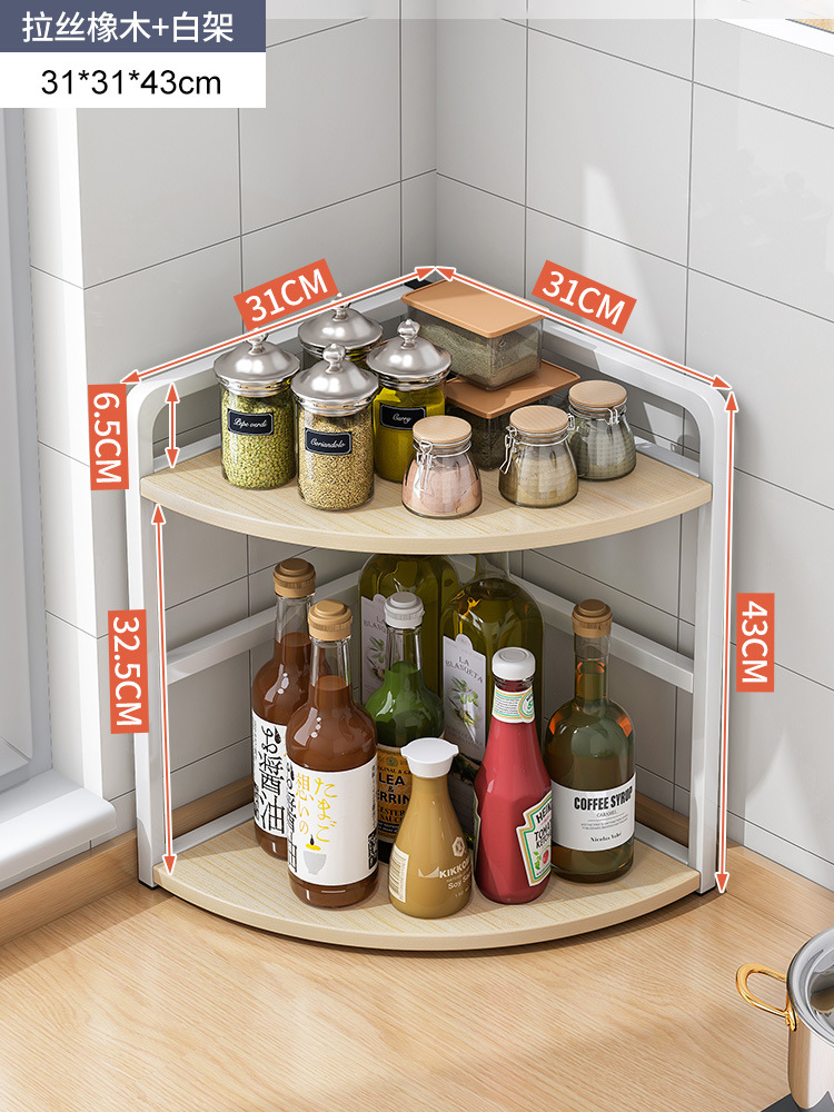[rounded corner] two-layer brushed oak + white frame 25 x25x43cm: multilayer storage occupies small ground