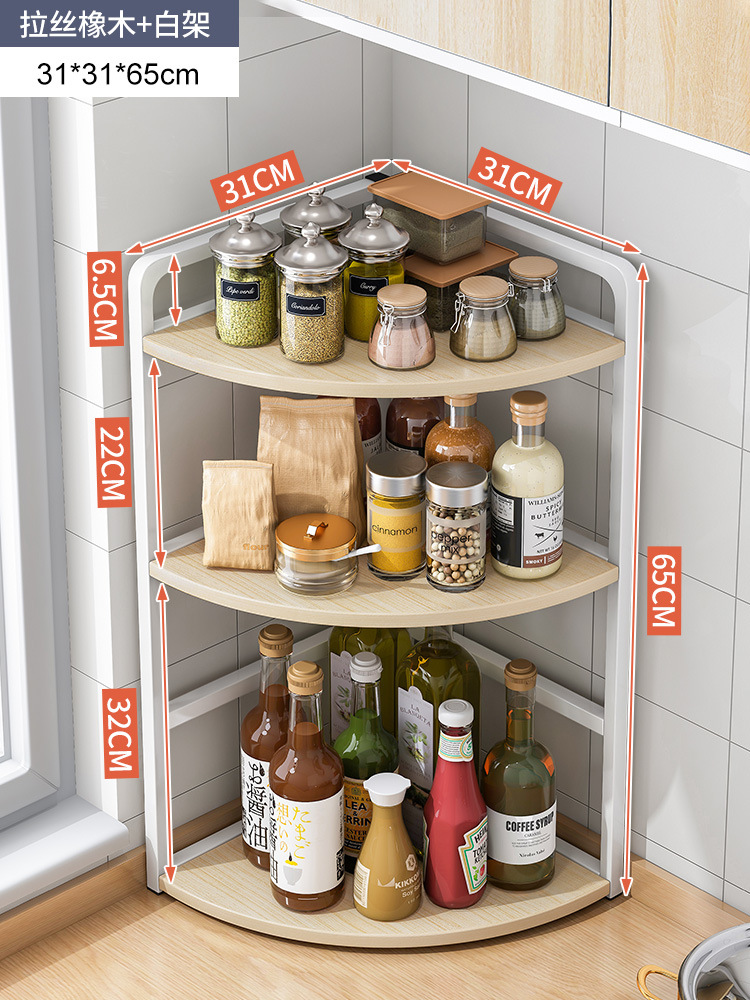 [rounded corner widened style] three-layer brushed oak + white frame 31 x31x65cm: multilayer storage occupies small ground