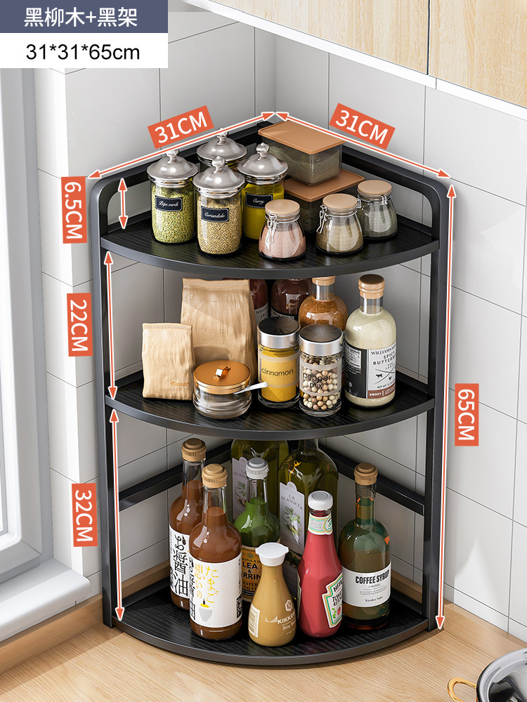 [rounded corner] three-layer black willow + black frame 25 x25x65cm: multilayer storage occupies small ground