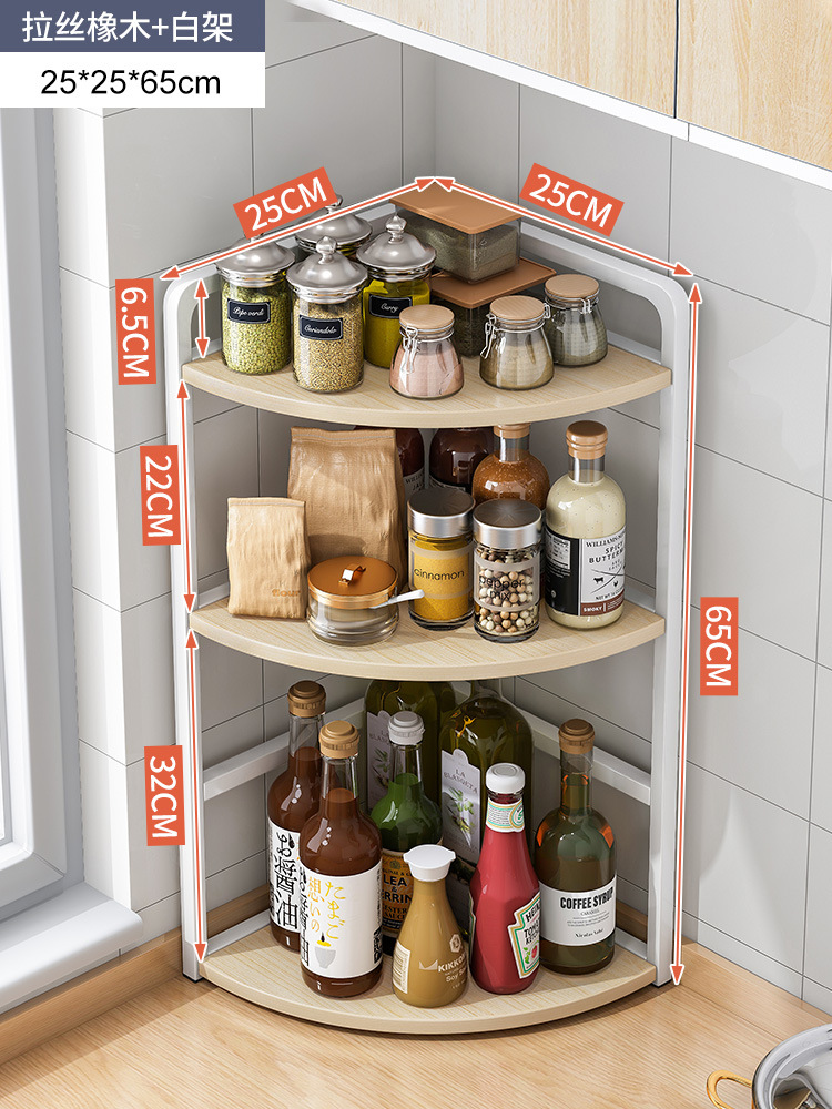 [rounded corner] three-layer brushed oak + white frame 25 x25x65cm: multilayer storage occupies small ground