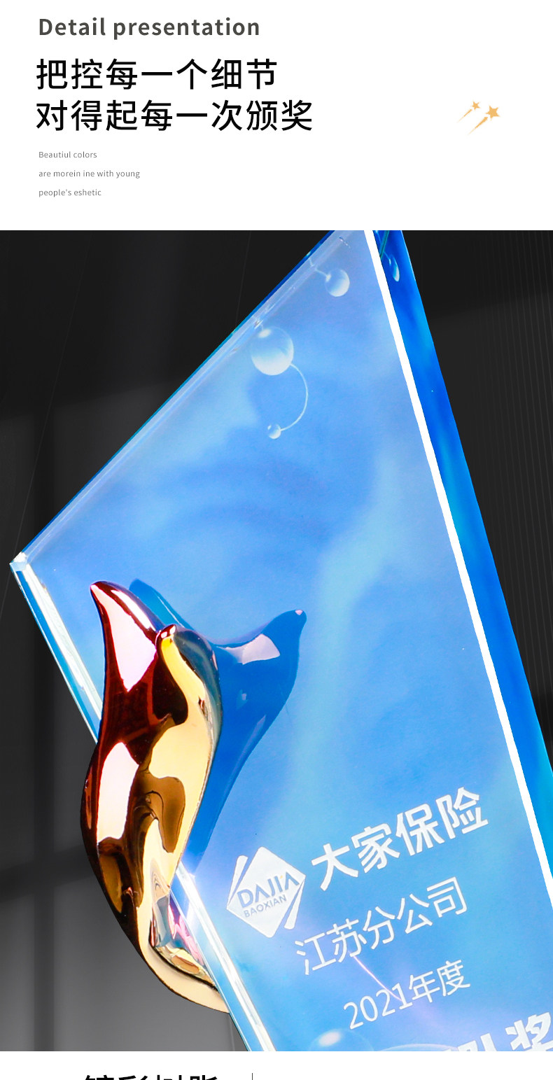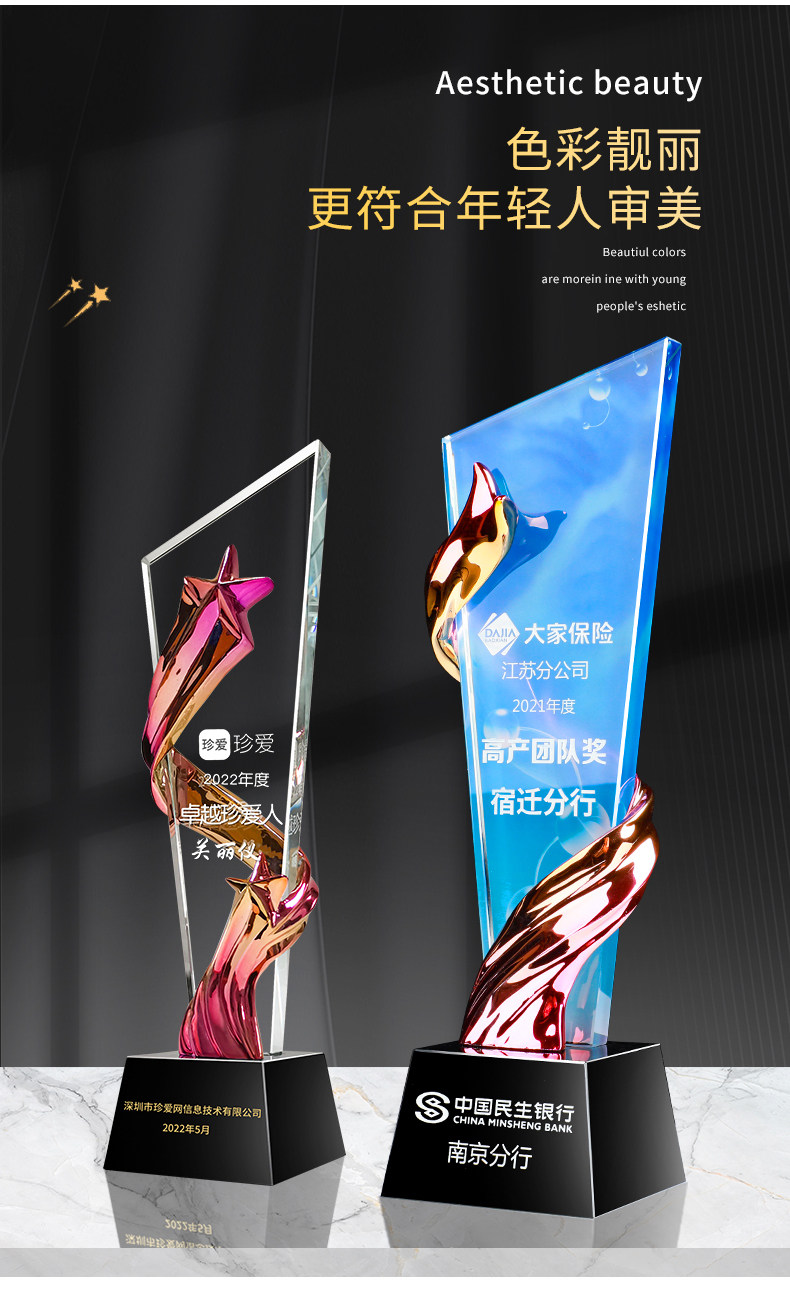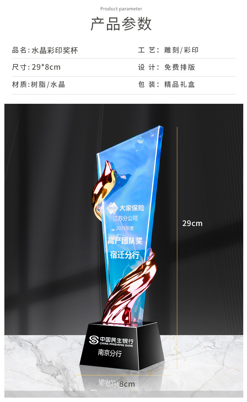 crystal color printing trophy series sky blue