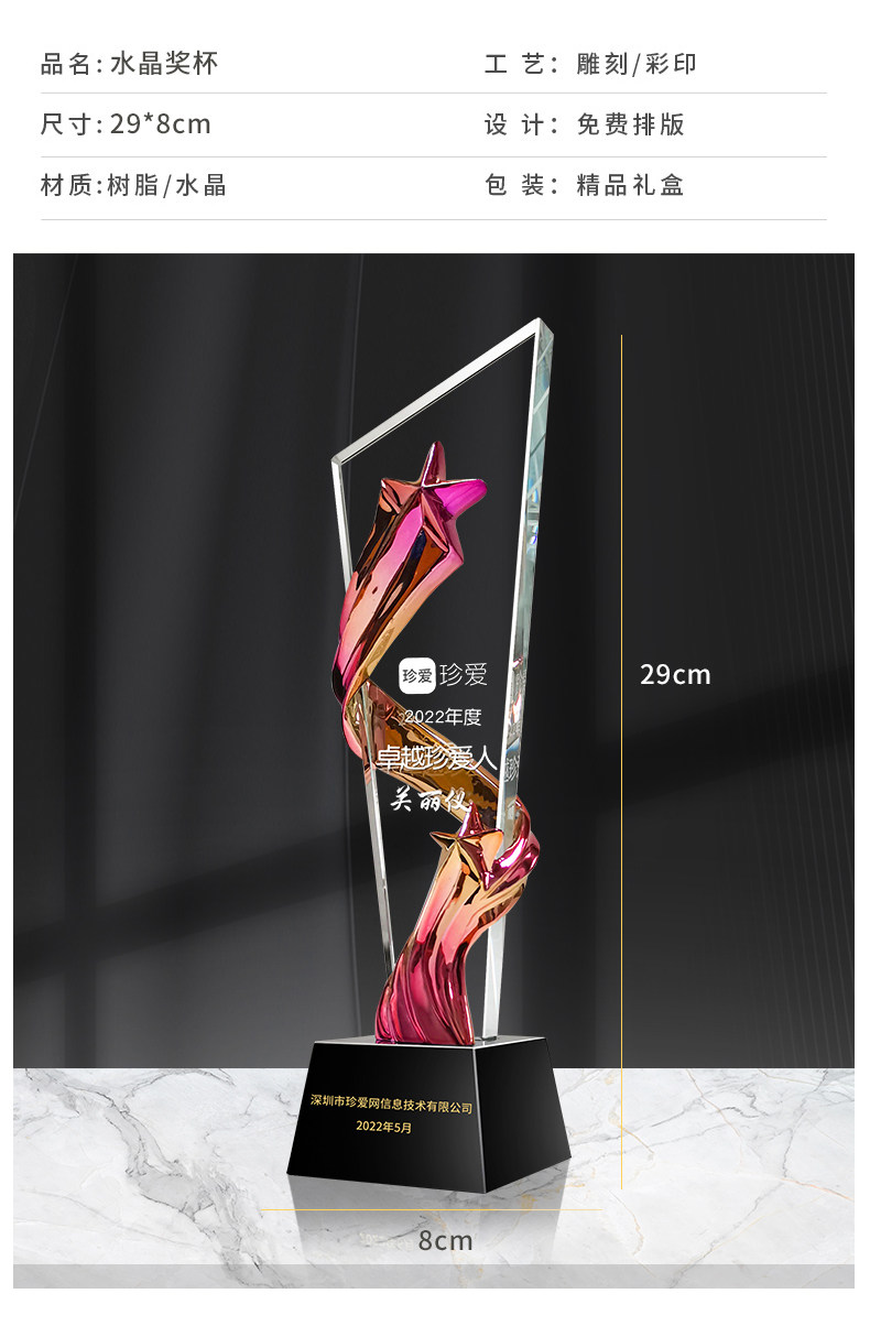 crystal color printing trophy series orange