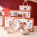 Ceramic Rice Bowl with Deer Pattern Tableware Set, Ceramic Bowl, Hand Painted Tableware Set, Gift Ceramic Soup Bowl