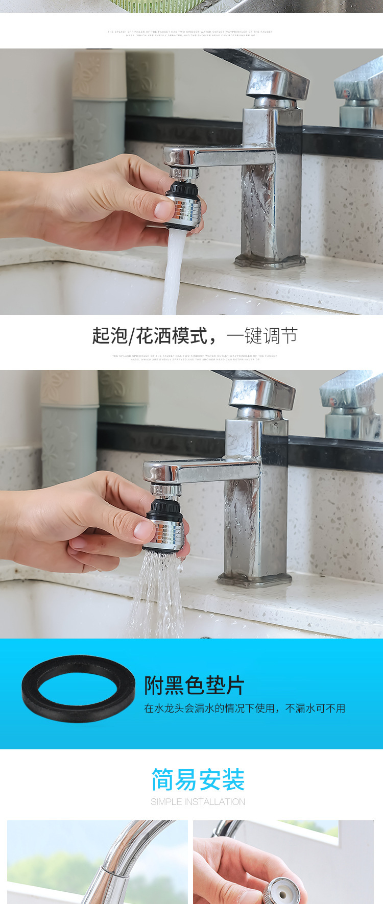 Kitchen Stainless Steel Faucet Shower Head Water Saving Device Lengthened Rotary Splash Proof Nozzle Spray Sprinkler Bubbler