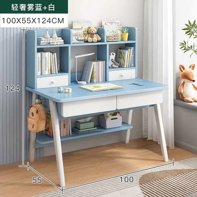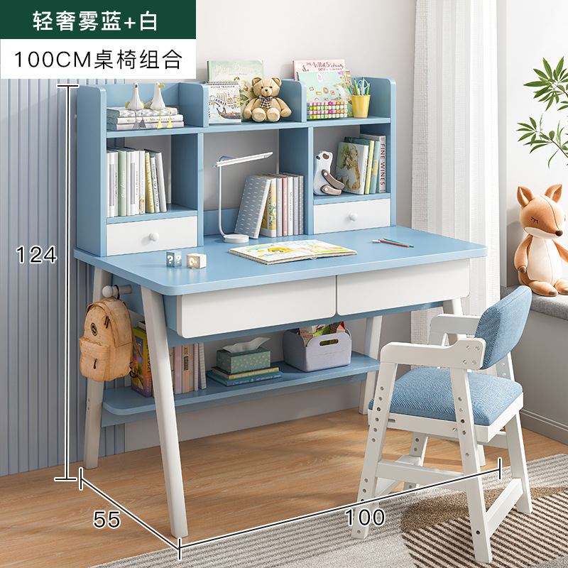 [single table + elevating study chair] 100*55 fog blue and white: table stand integrated thick and stable