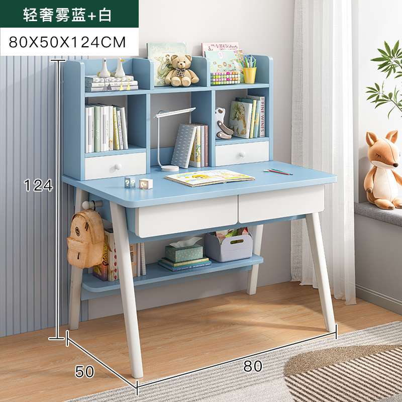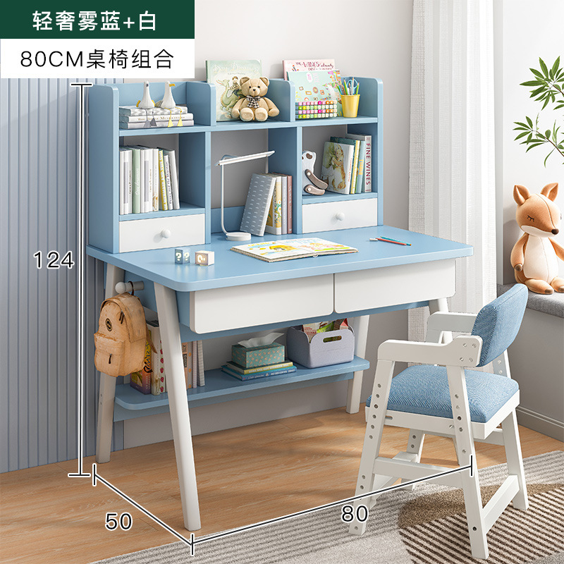 [single table + elevating study chair] 80*50 fog blue and white: table stand integrated thick and stable