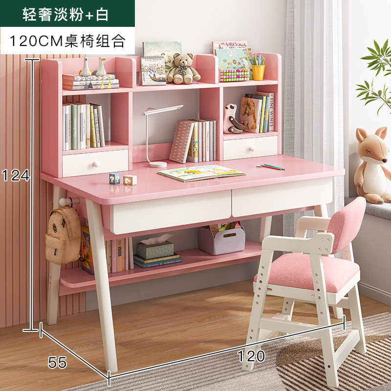 [single table + elevating study chair] 120*55 light pink + white: table stand integrated thick and stable