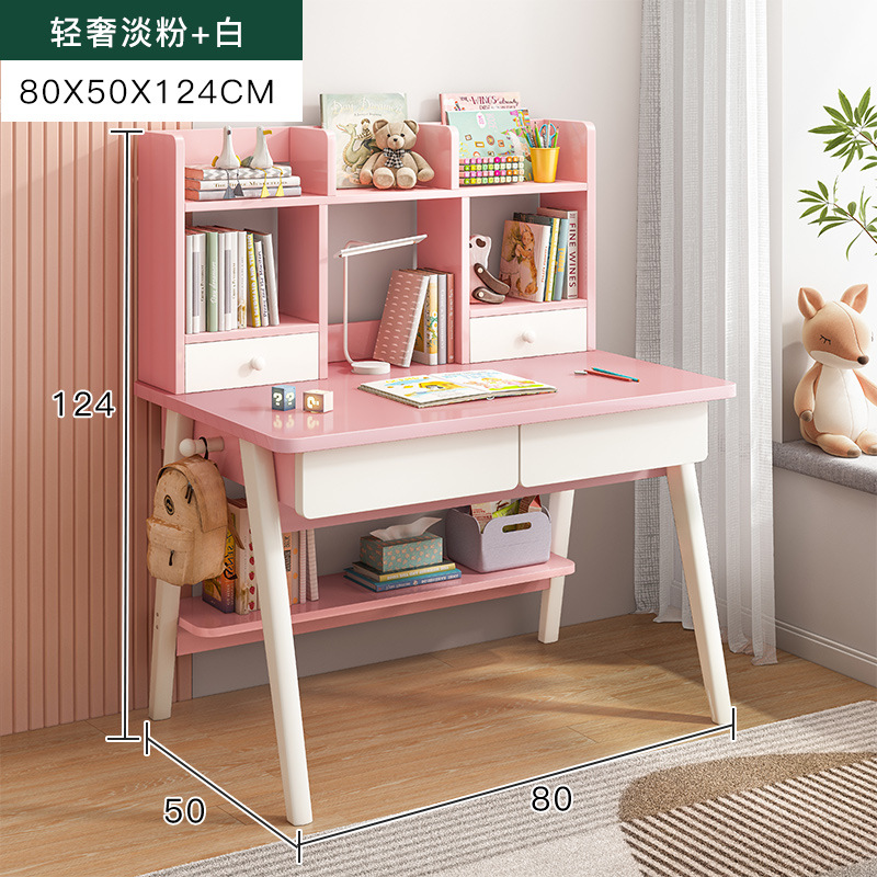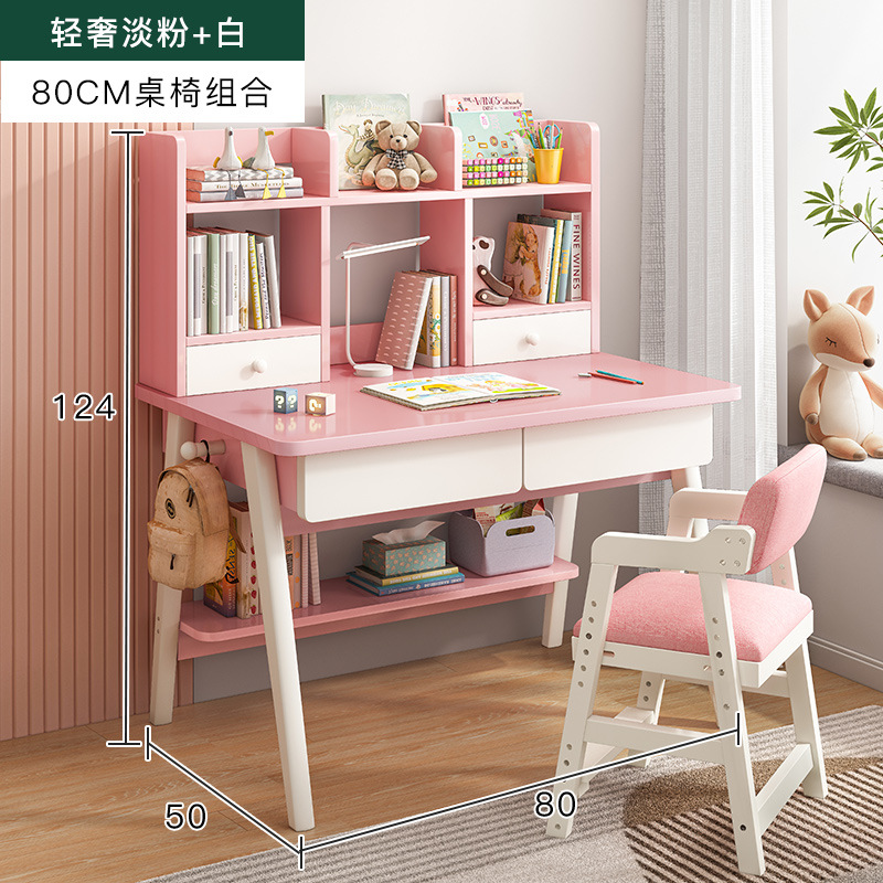 [single table + elevating study chair] 80*50 light pink + white: table stand integrated thick and stable