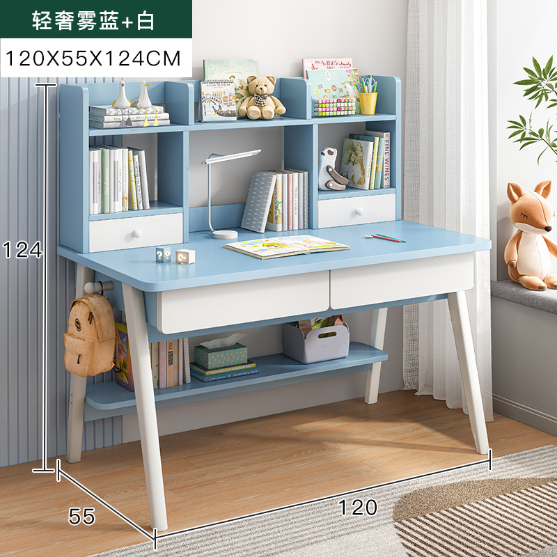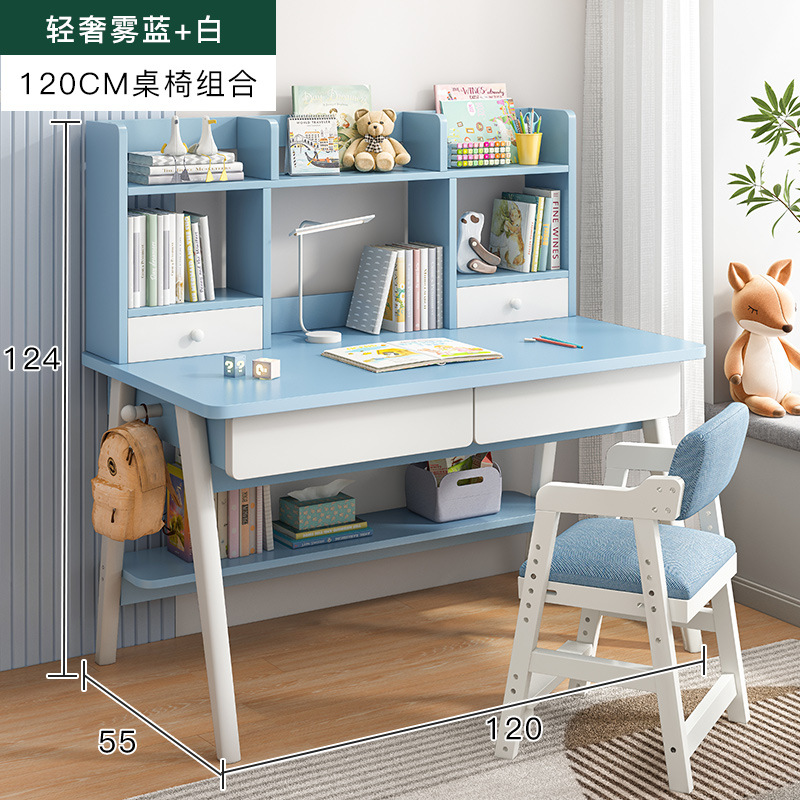 [single table + elevating study chair] 120*55 fog blue and white: table stand integrated thick and stable