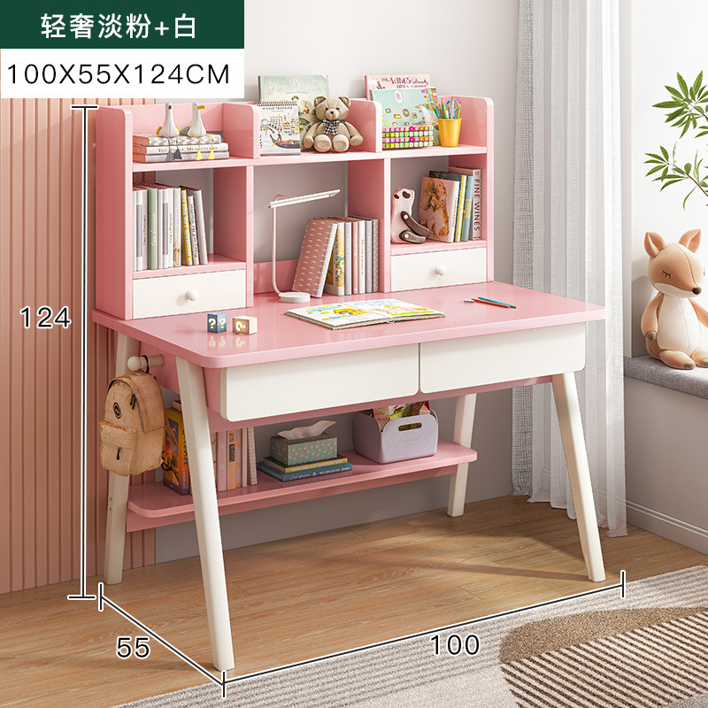 [single table + elevating study chair] 100*55 light pink + white: table stand integrated thick and stable