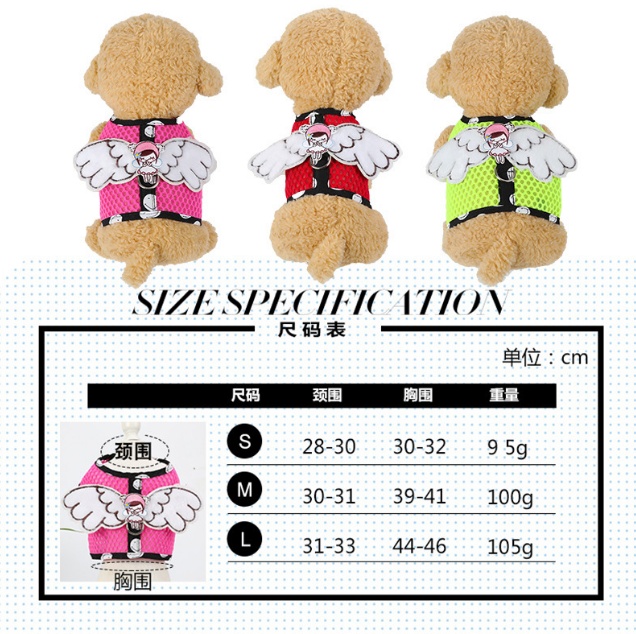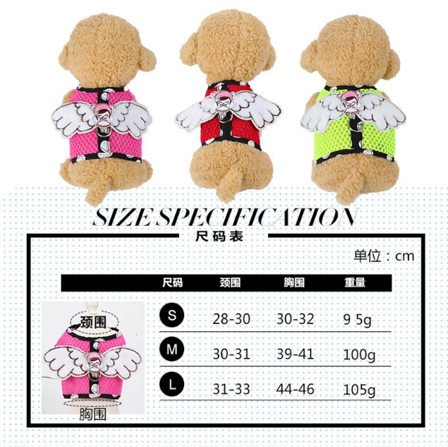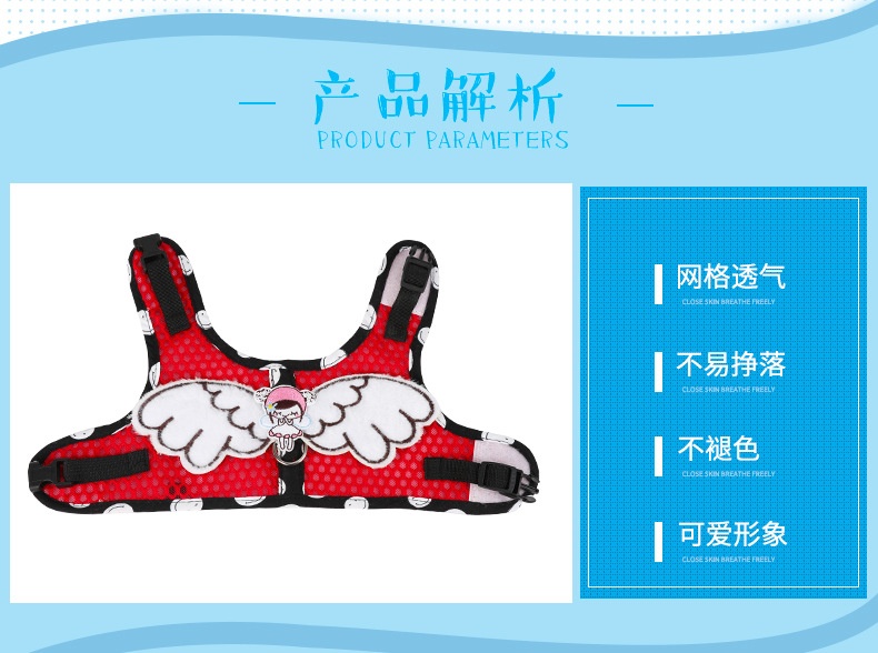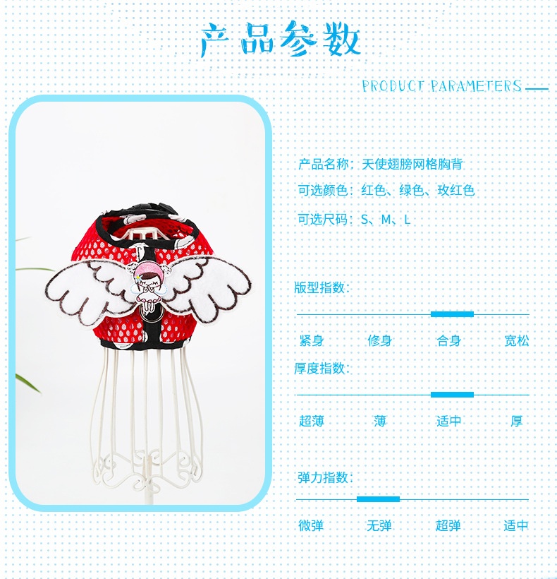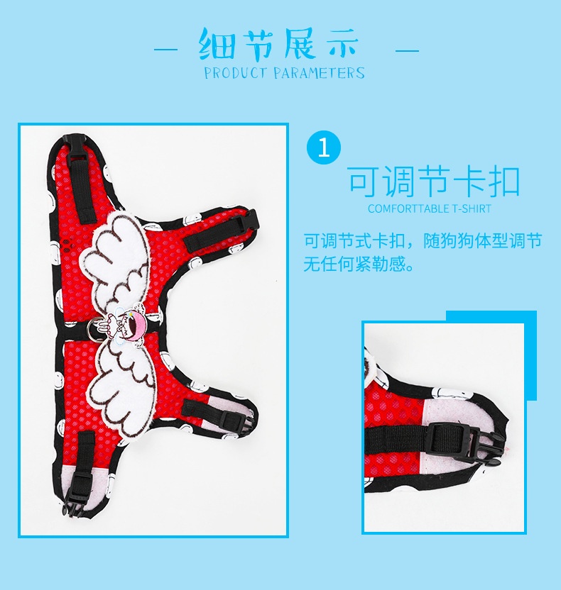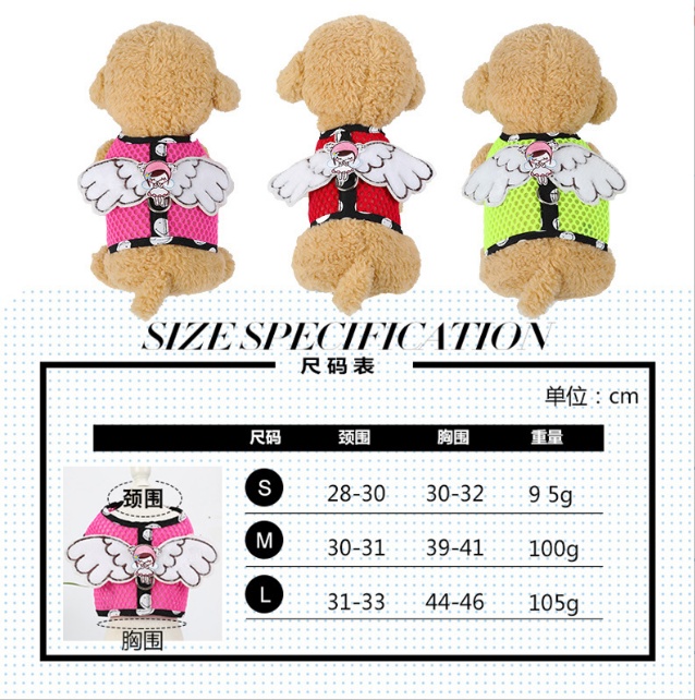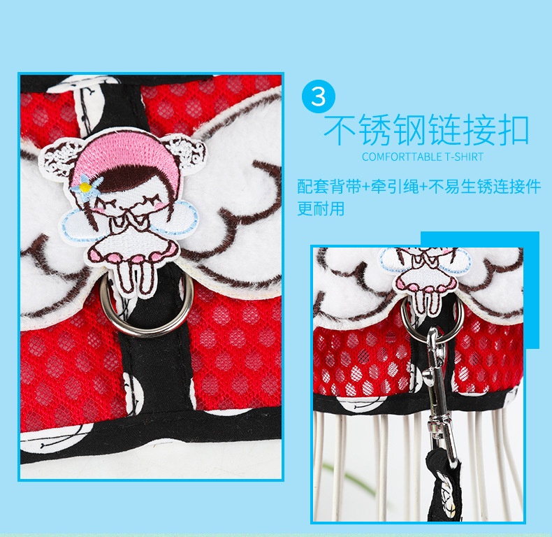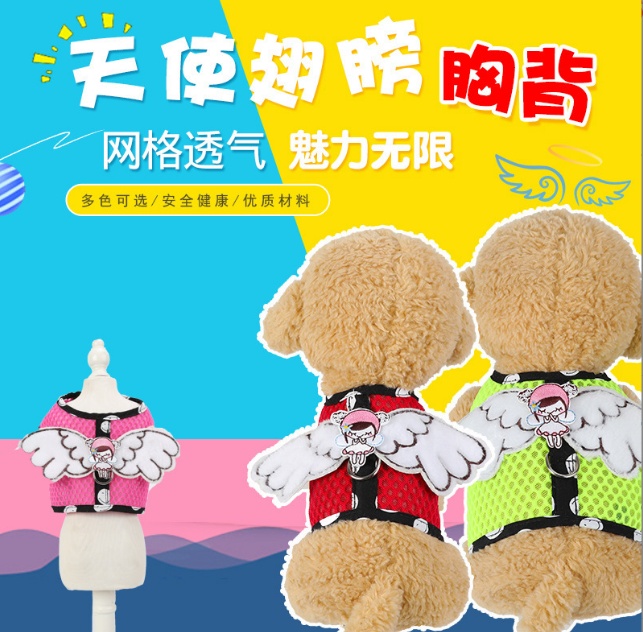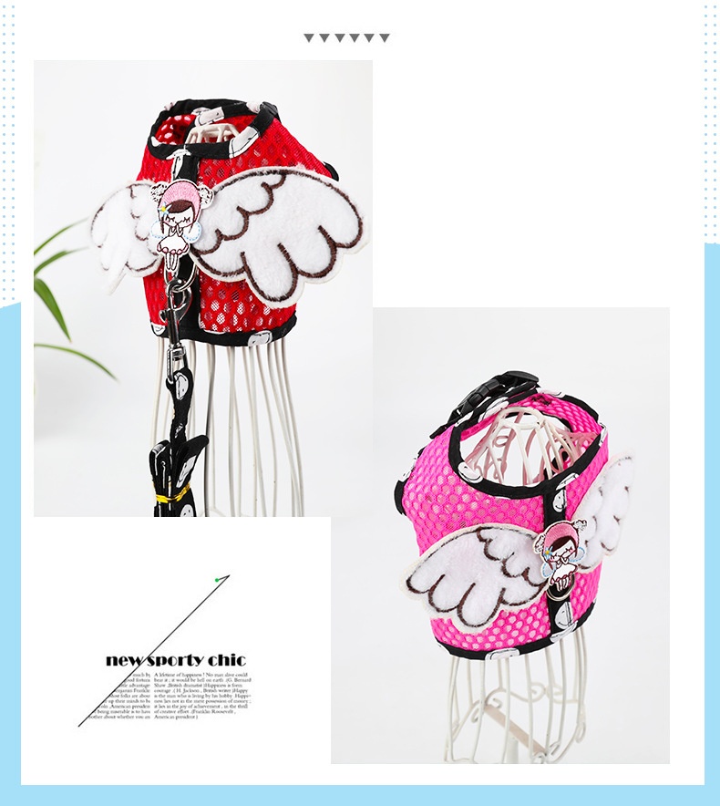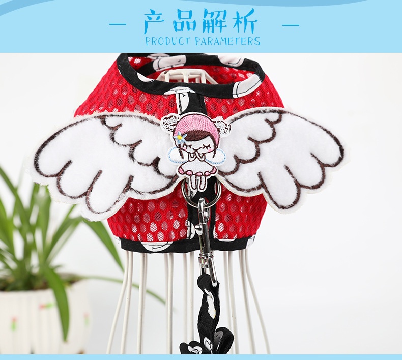 Dog Grid Pet Hand Holding Rope Cartoon Breathable Angel Wings Chest Strap Suit Cute Cat Chest Strap