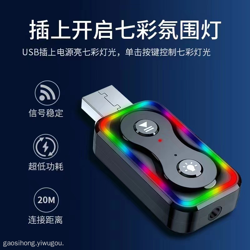 and Transmitting Two-in-One Function Bluetooth 5.3 Adapter Driver-Free Plug-and-Play with Seven-Color Ambience Light Q1