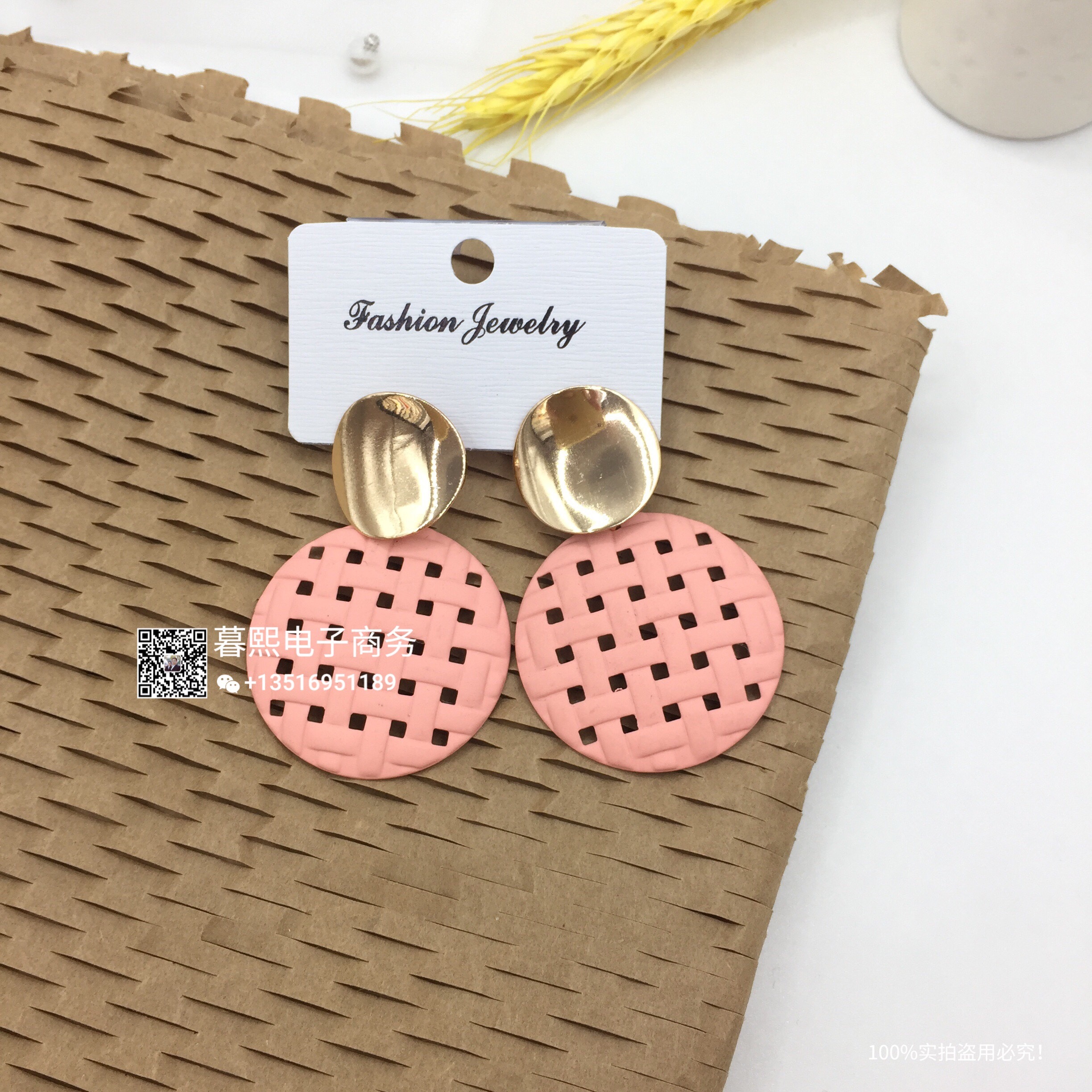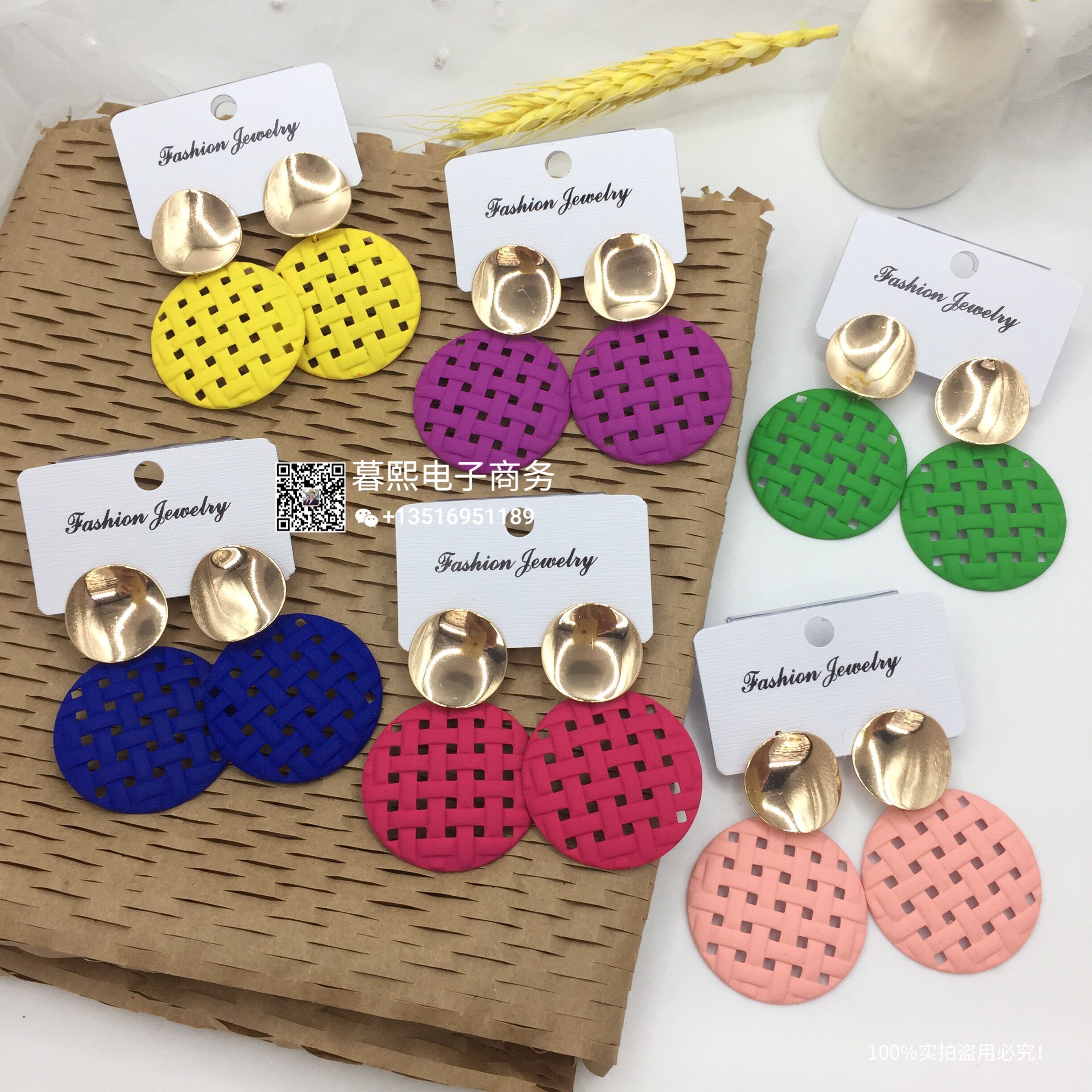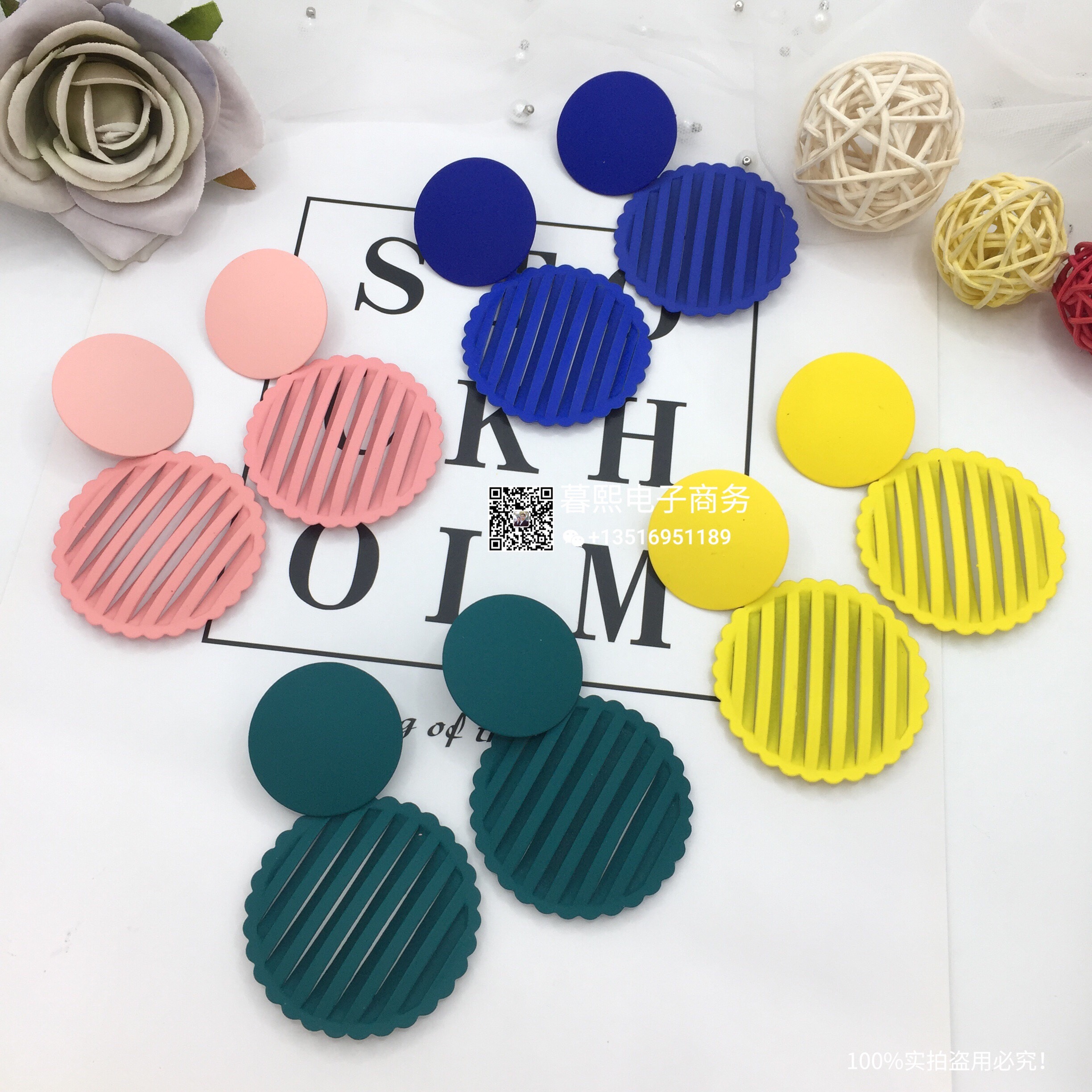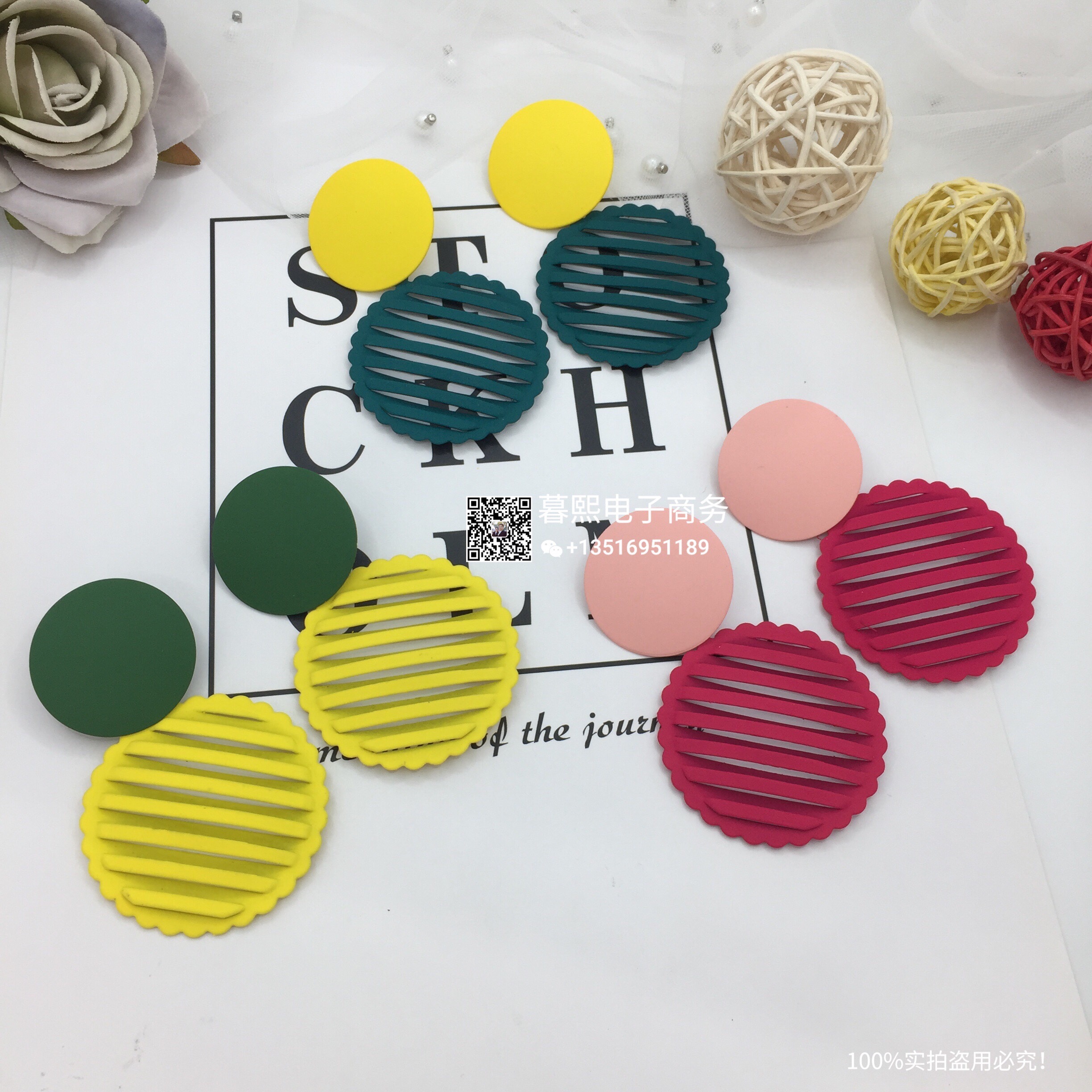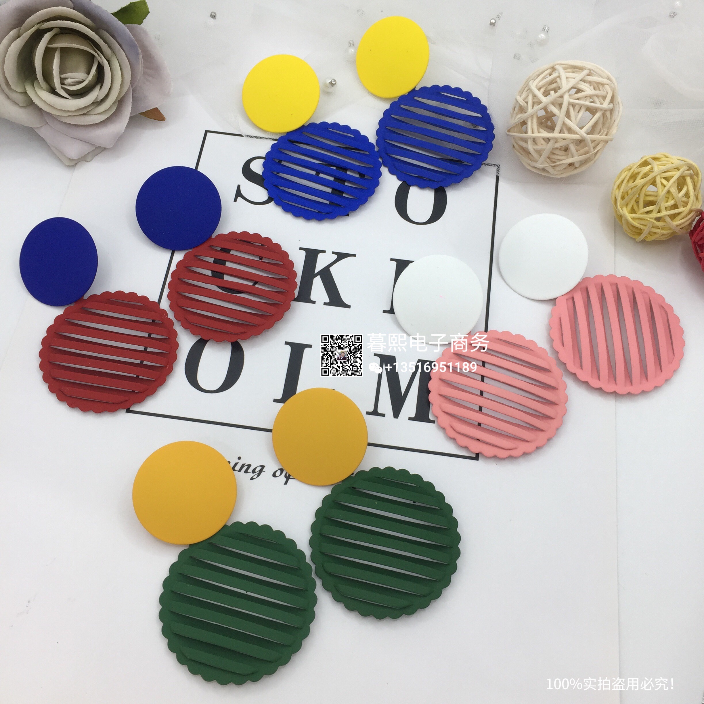 hollow contrast earrings stitching round round piece ear studs retro simple wild earrings female fashion net red cross-border wholesale