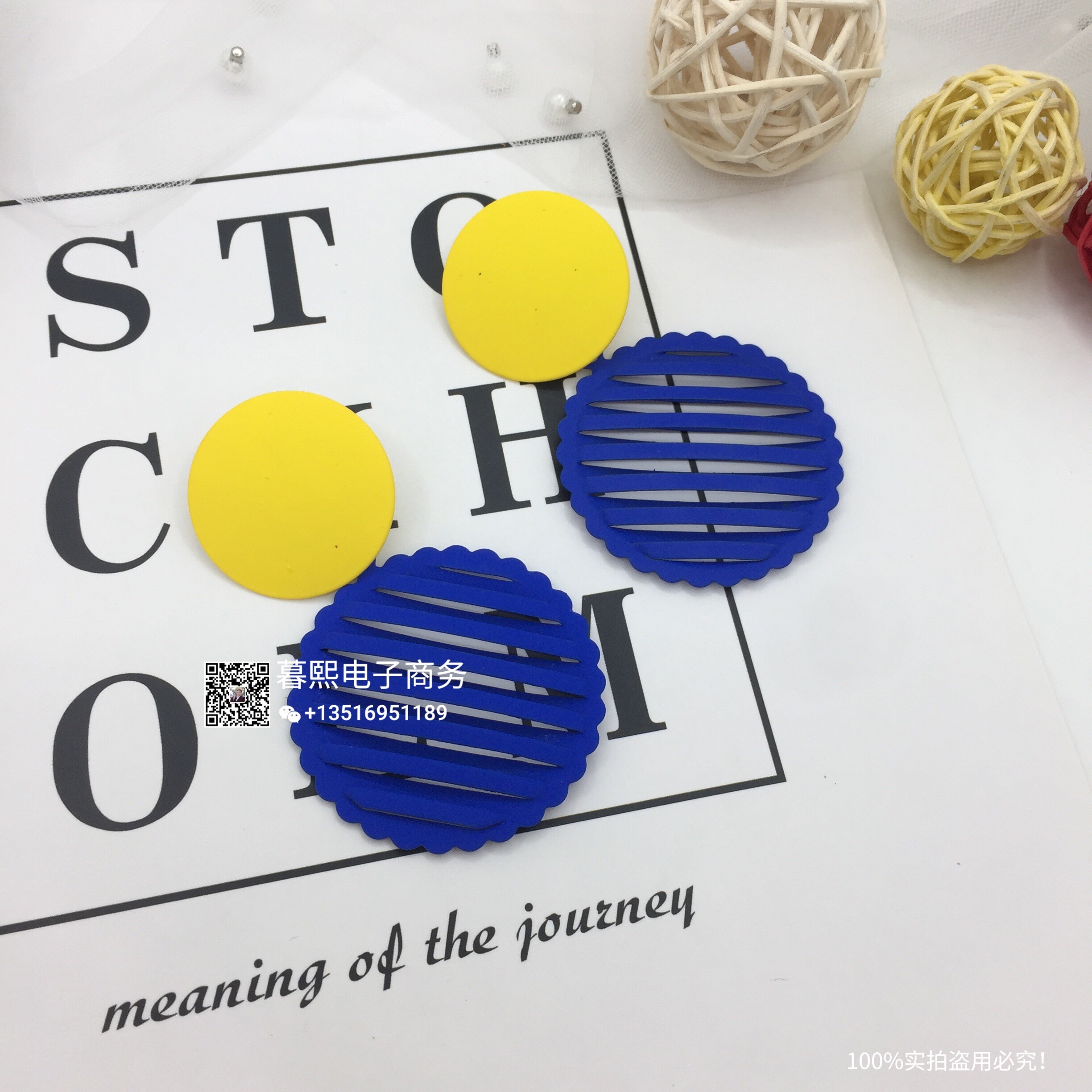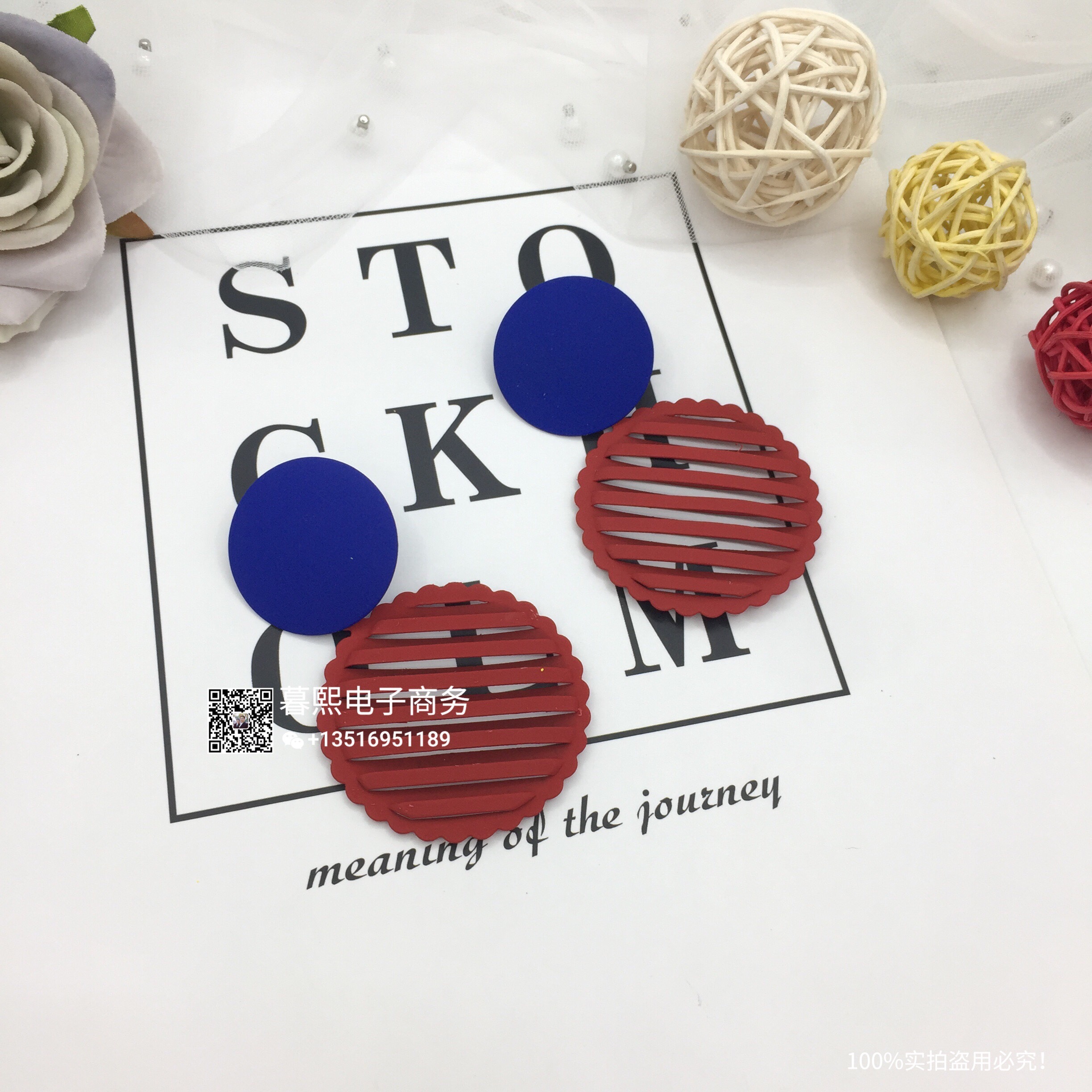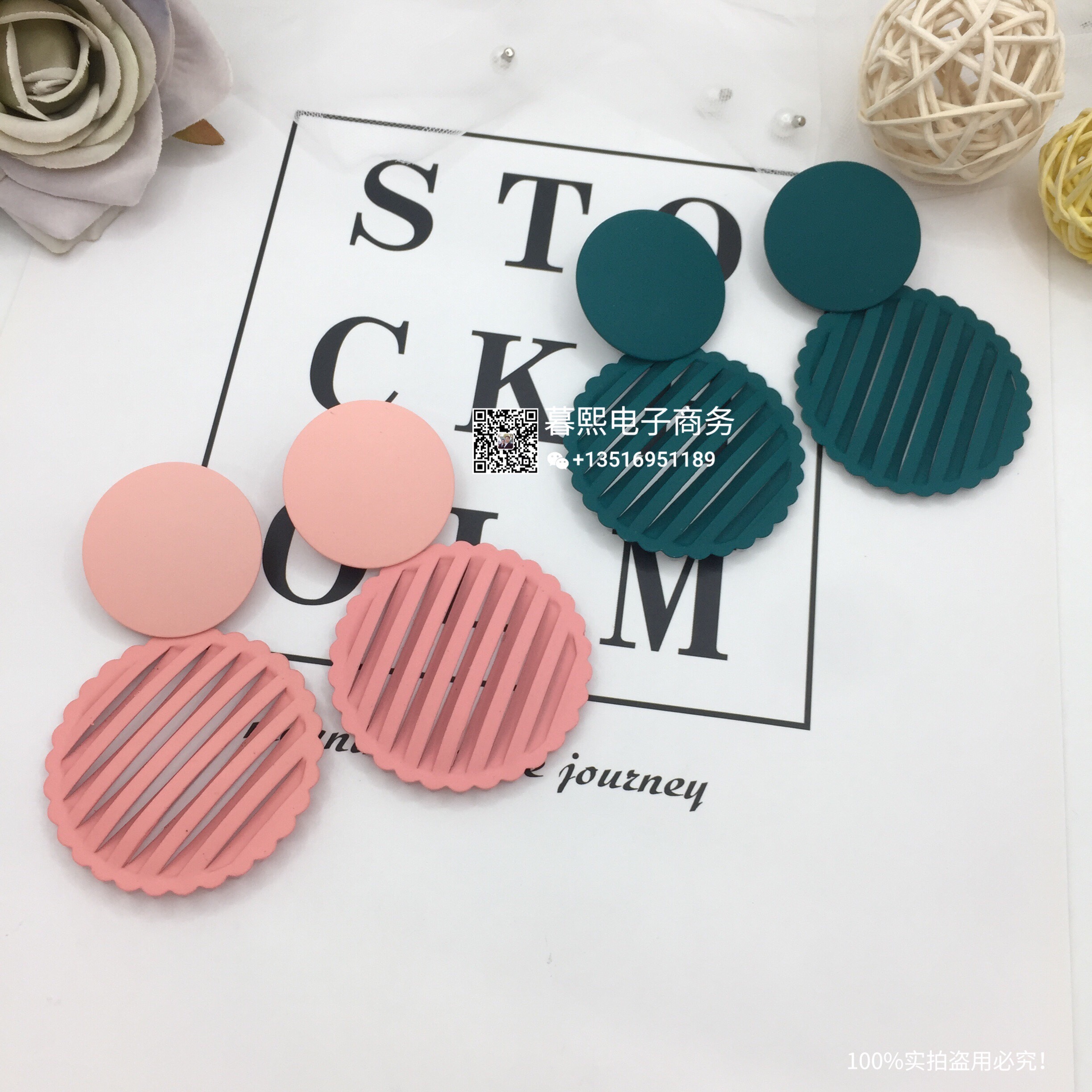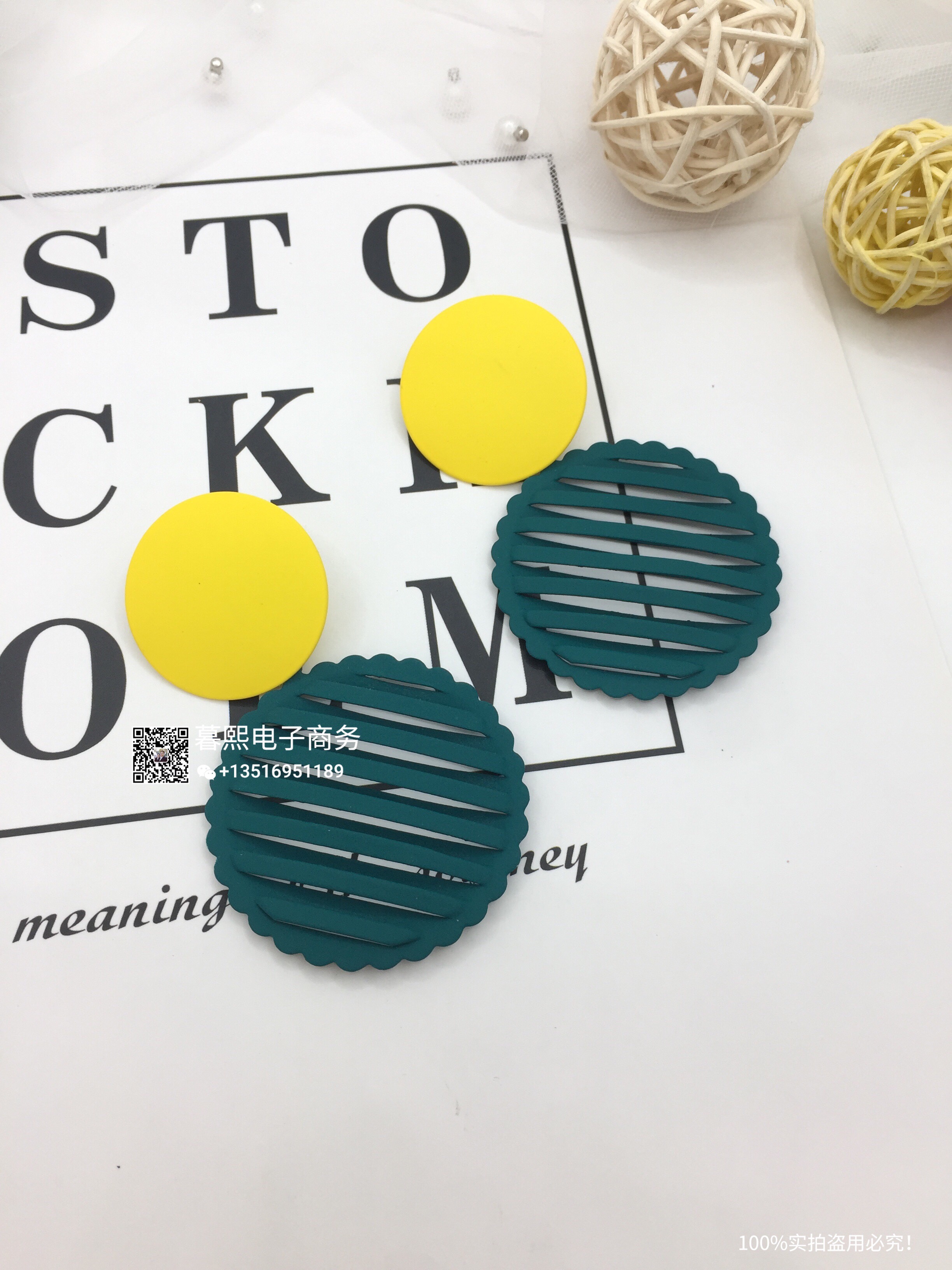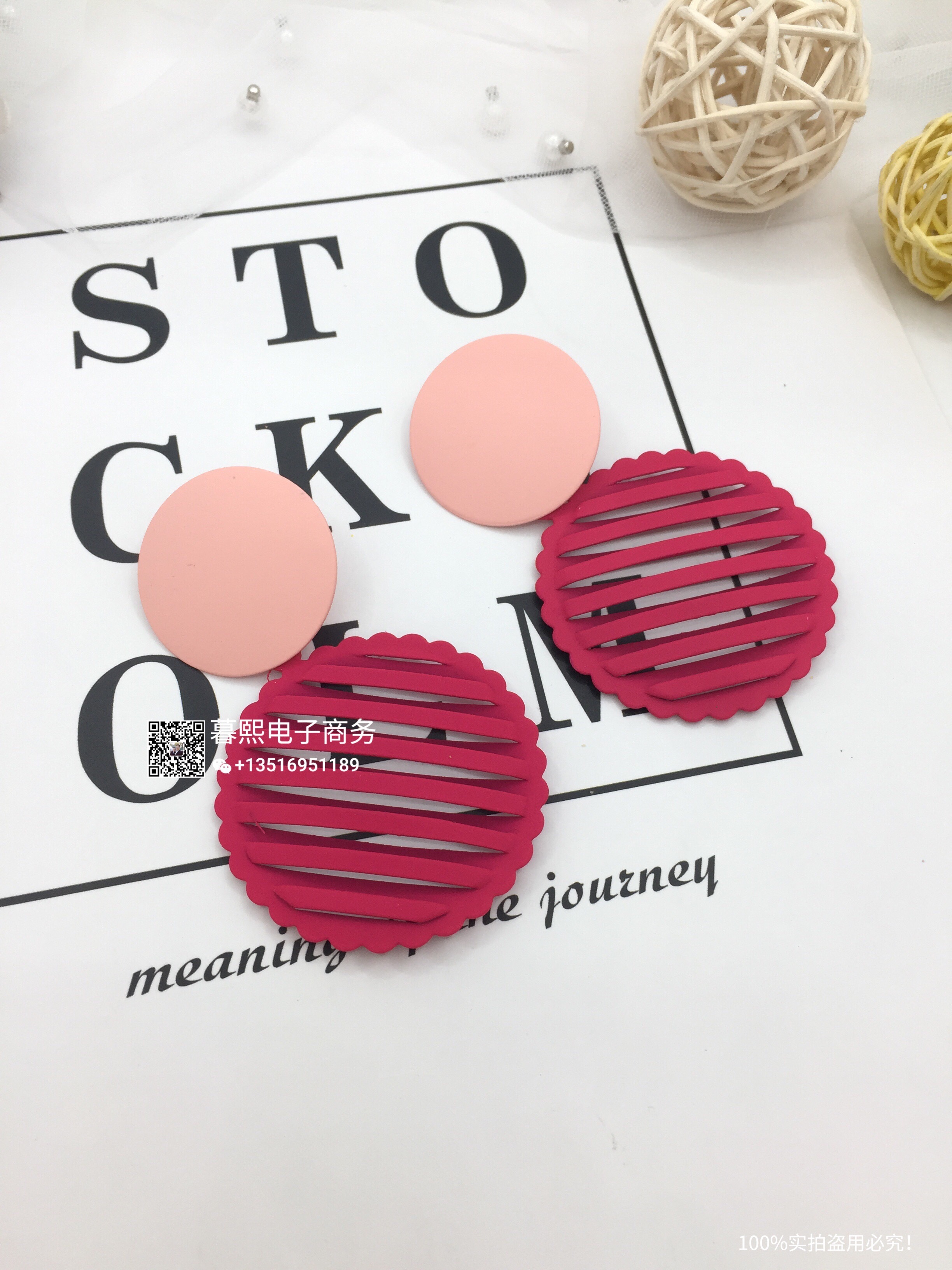 hollow contrast earrings stitching round round piece ear studs retro simple wild earrings female fashion net red cross-border wholesale