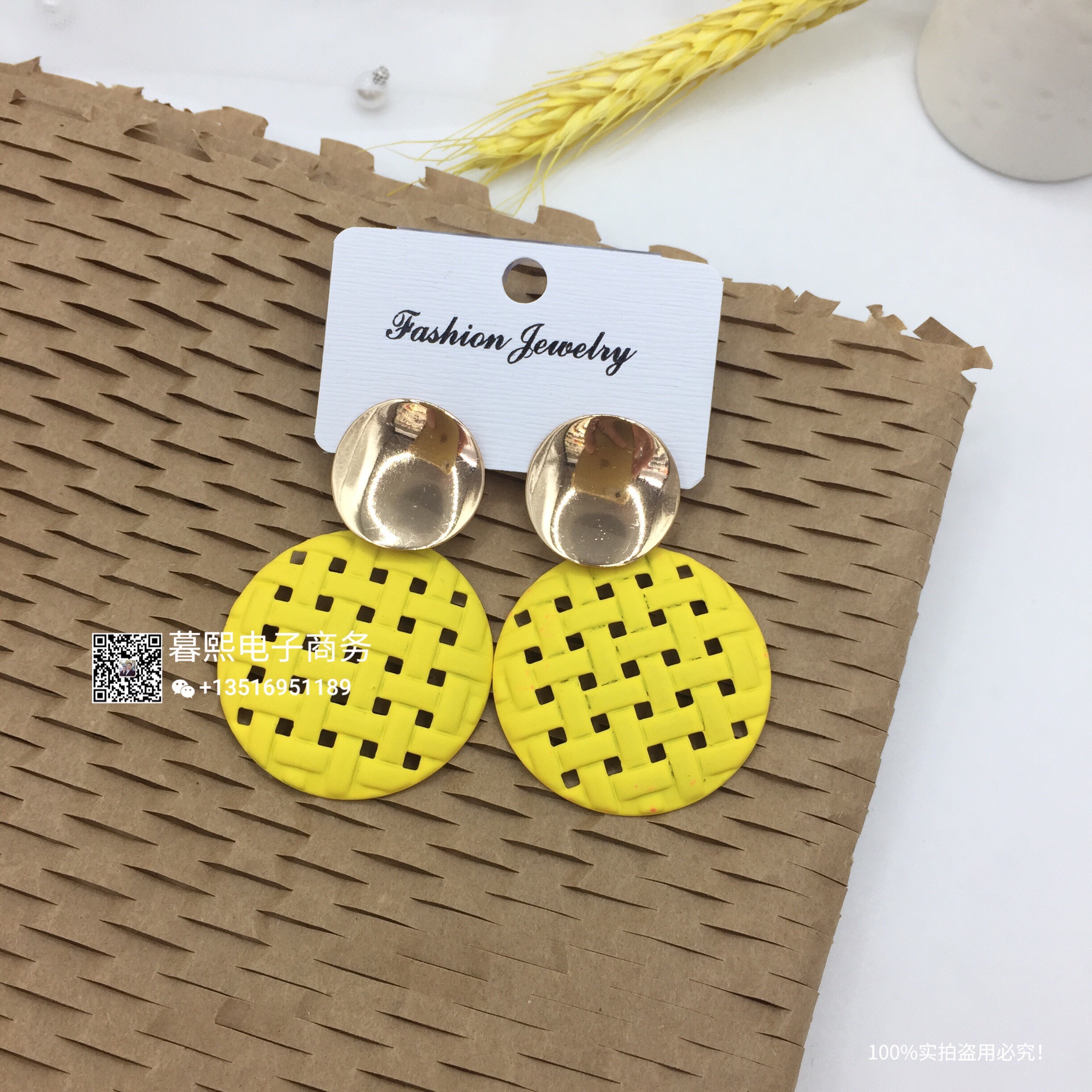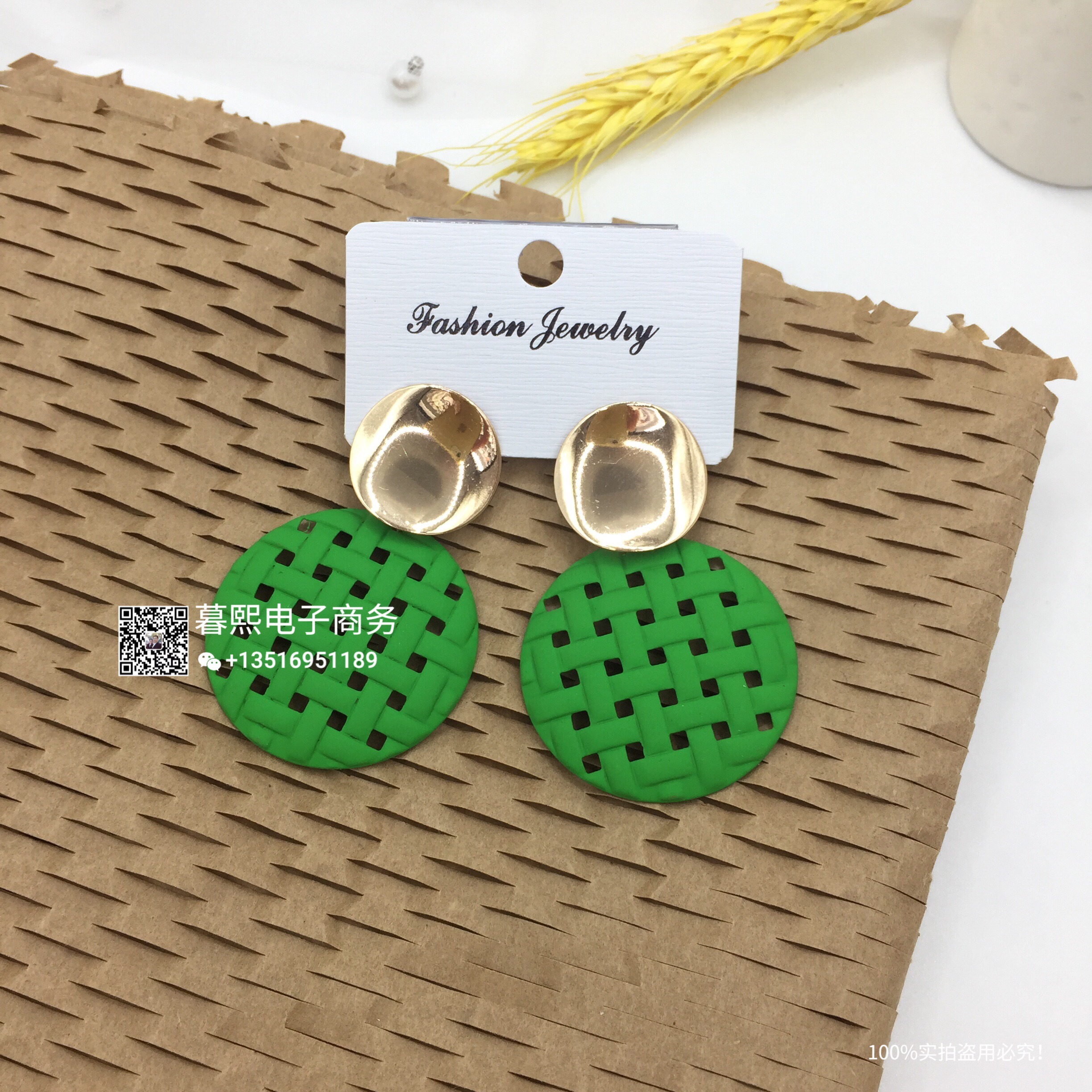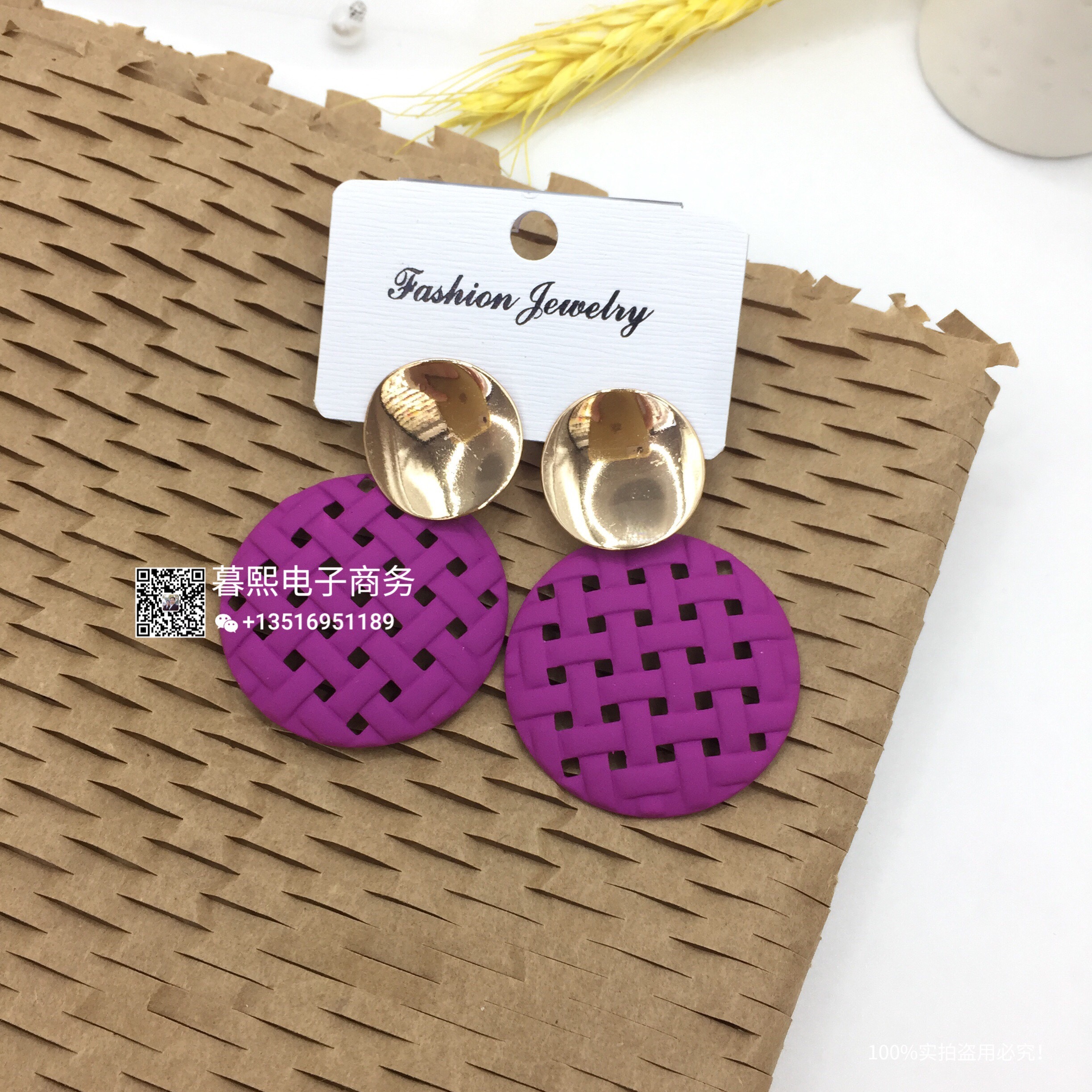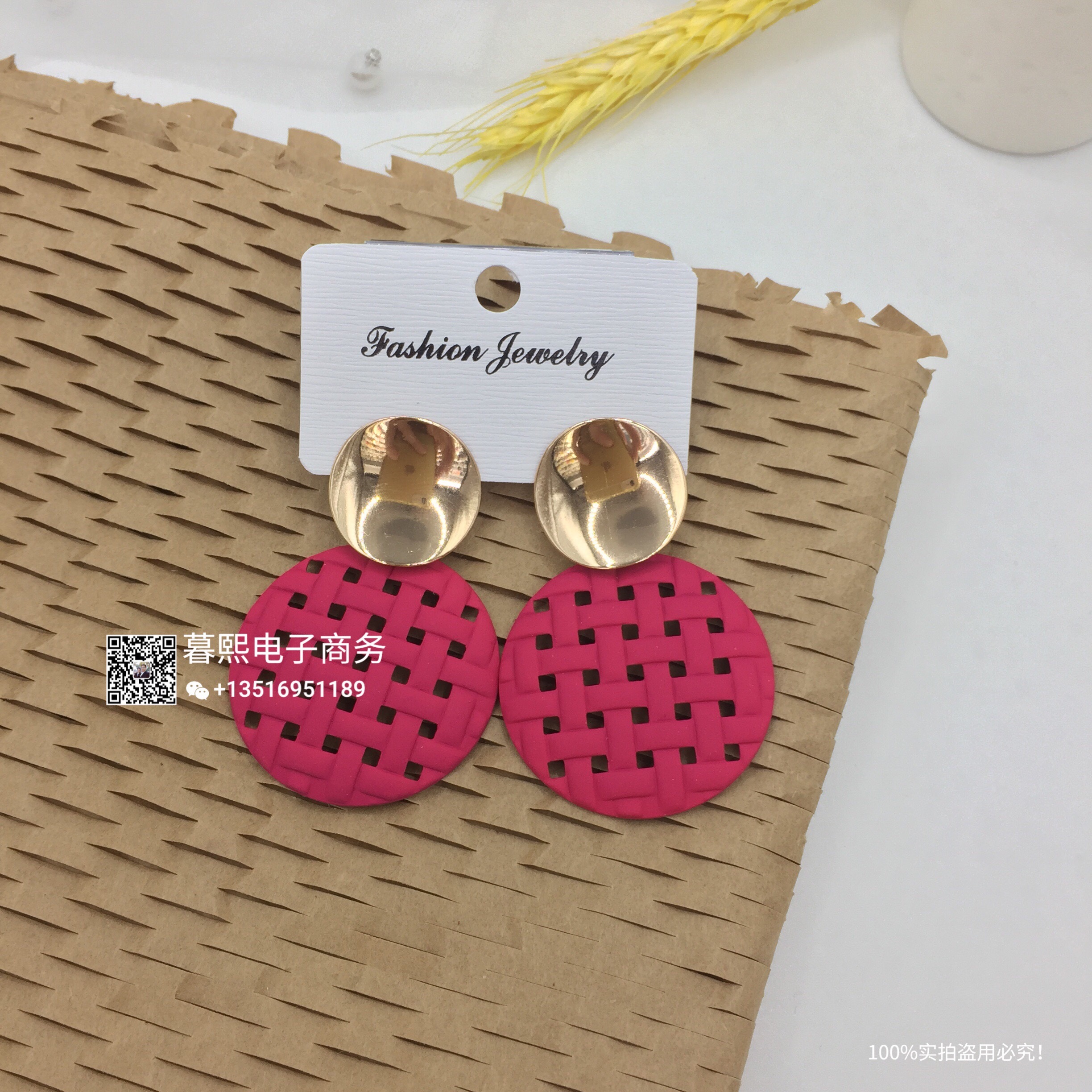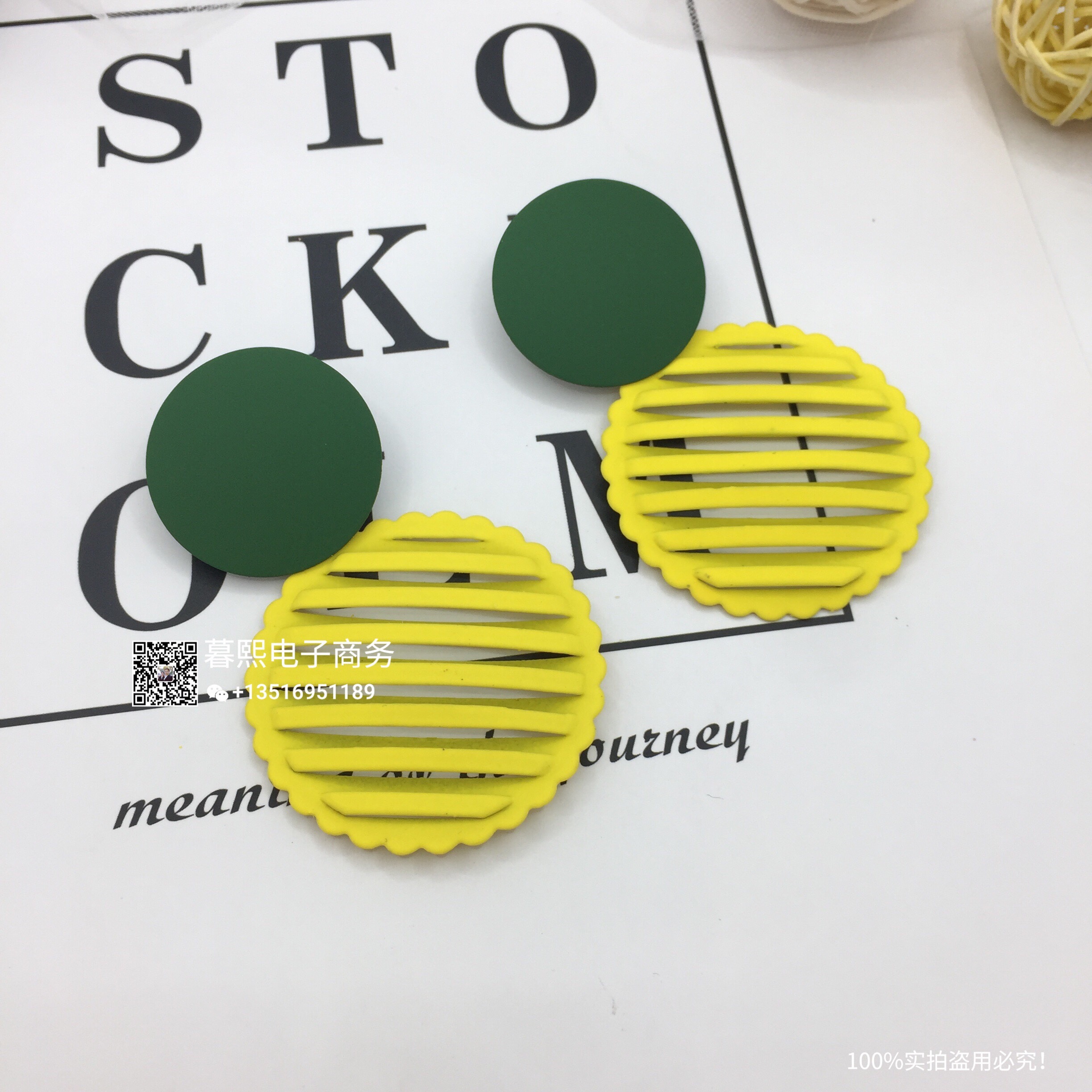 hollow contrast earrings stitching round round piece ear studs retro simple wild earrings female fashion net red cross-border wholesale