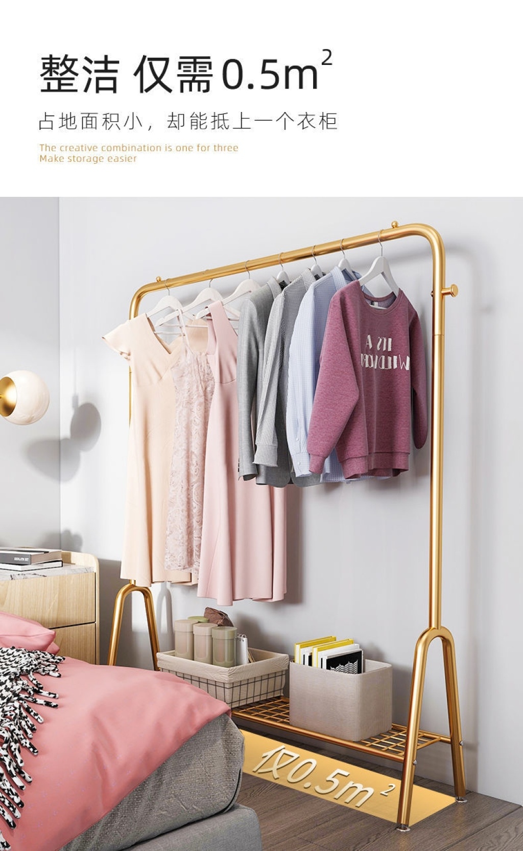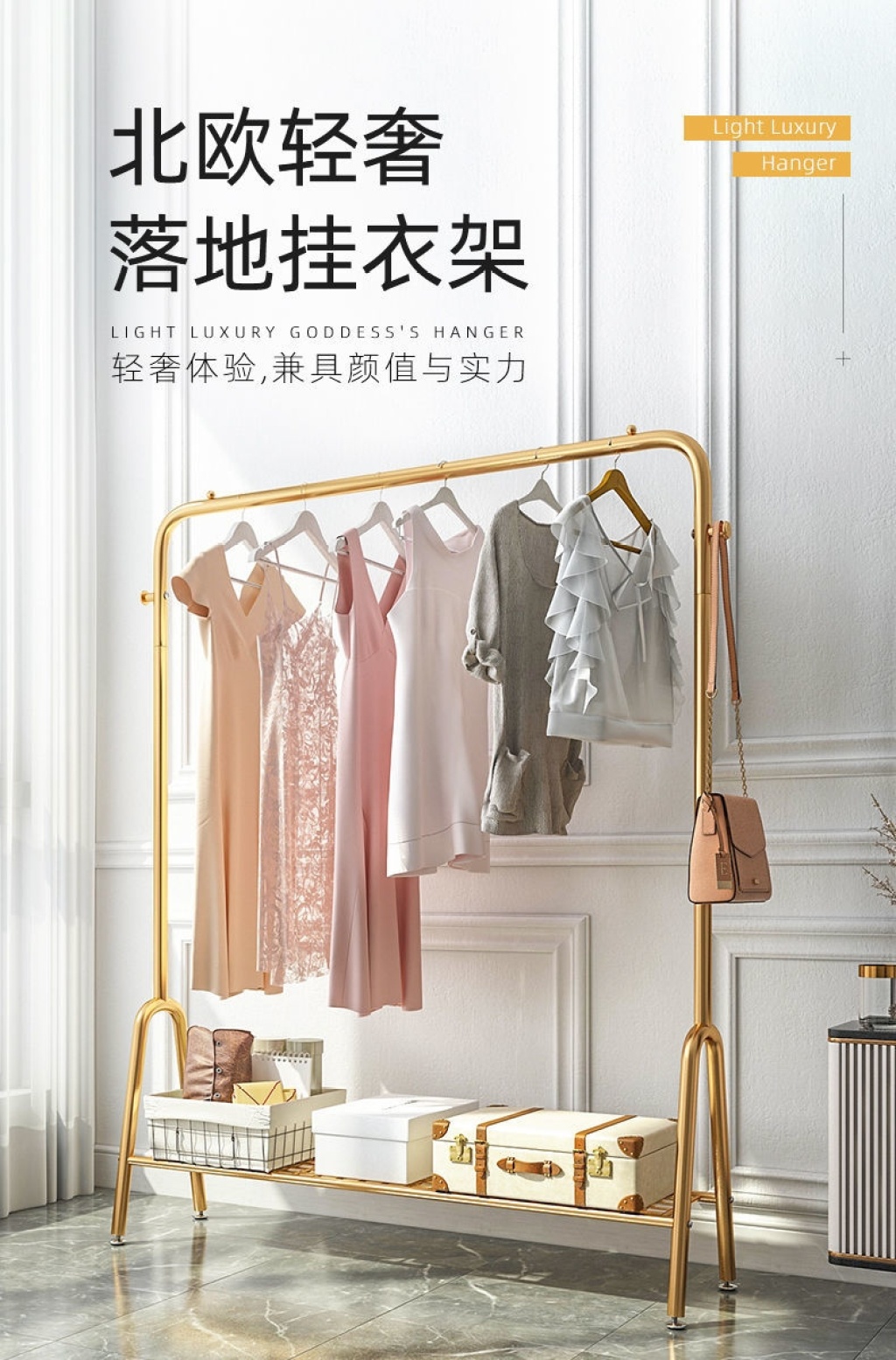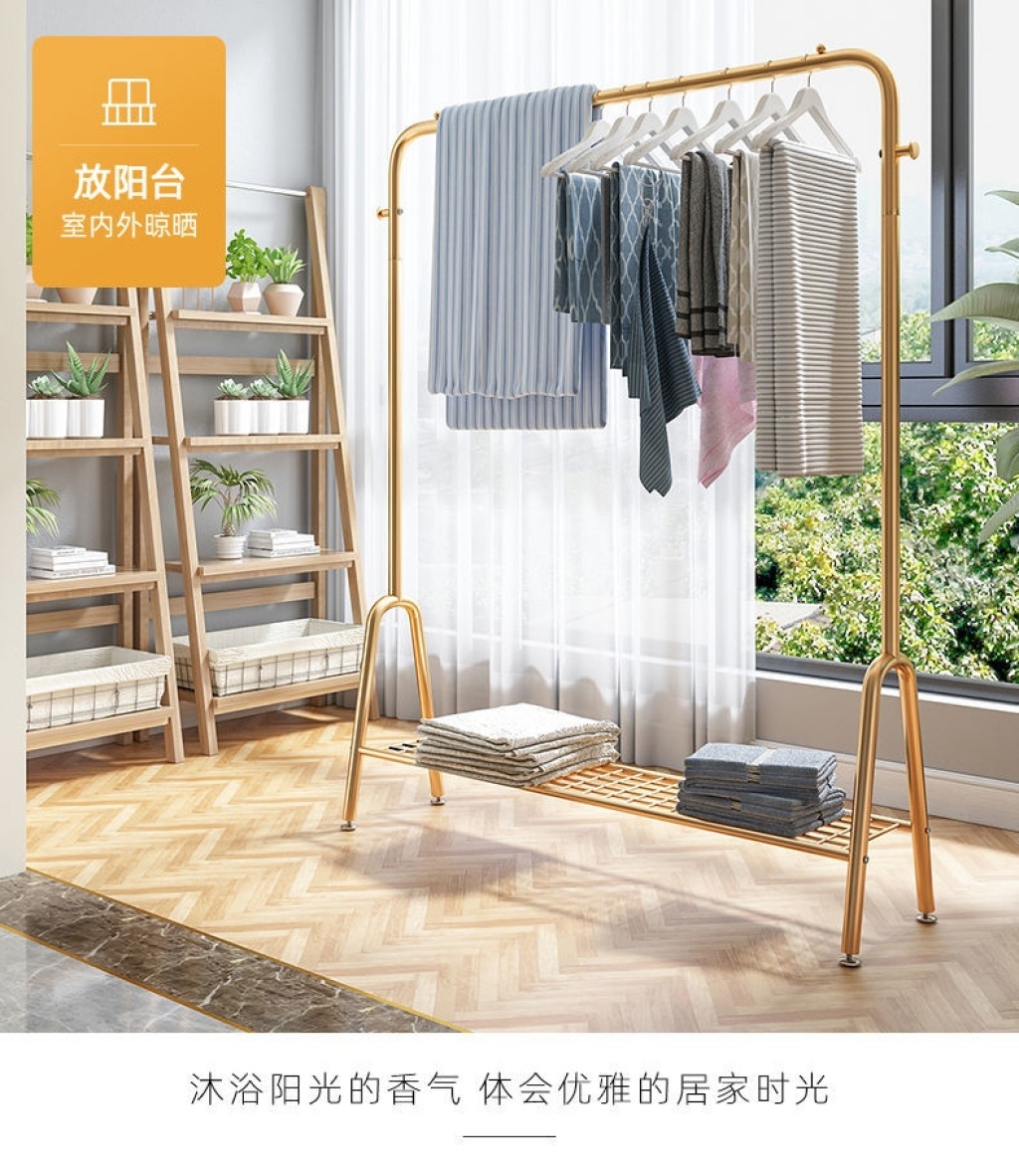 Light luxury clothes rack household floor coat rack balcony clothes rack bedroom internal net red single rod simple clothes rack
