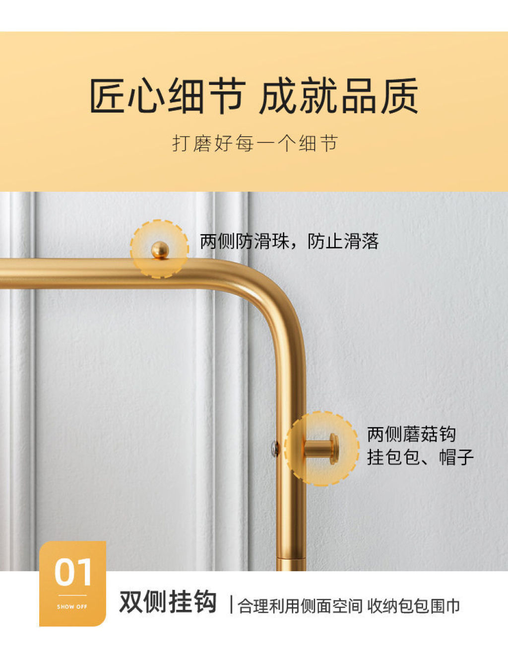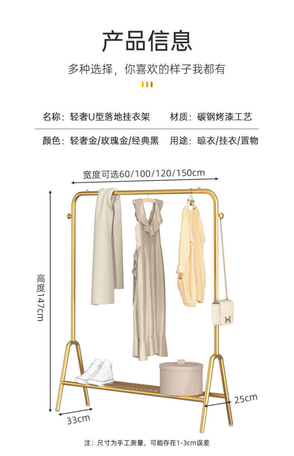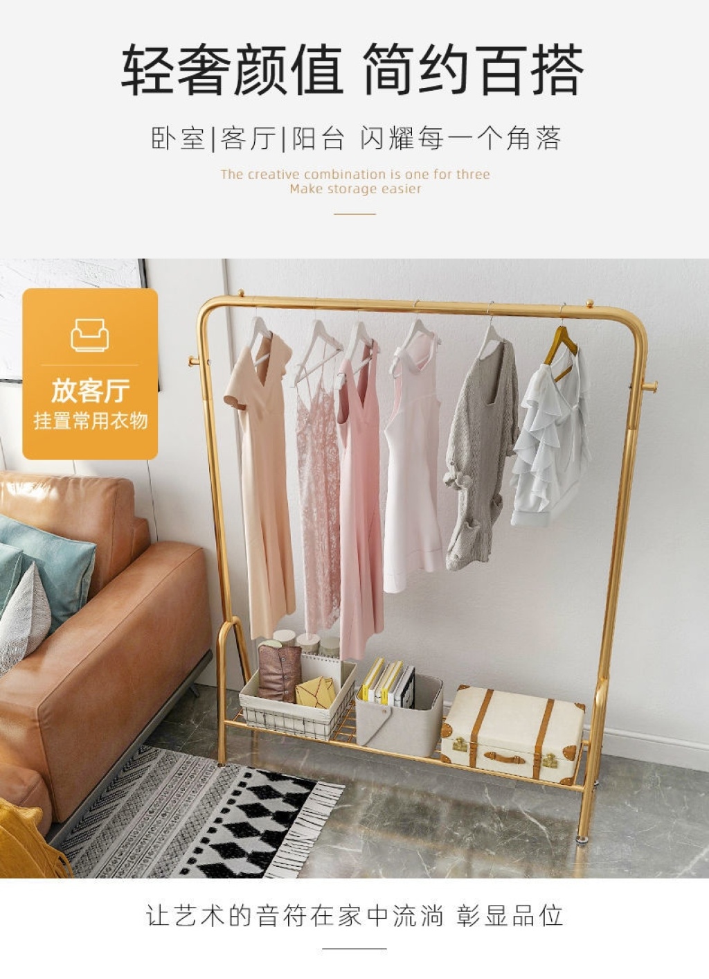 Light luxury clothes rack household floor coat rack balcony clothes rack bedroom internal net red single rod simple clothes rack