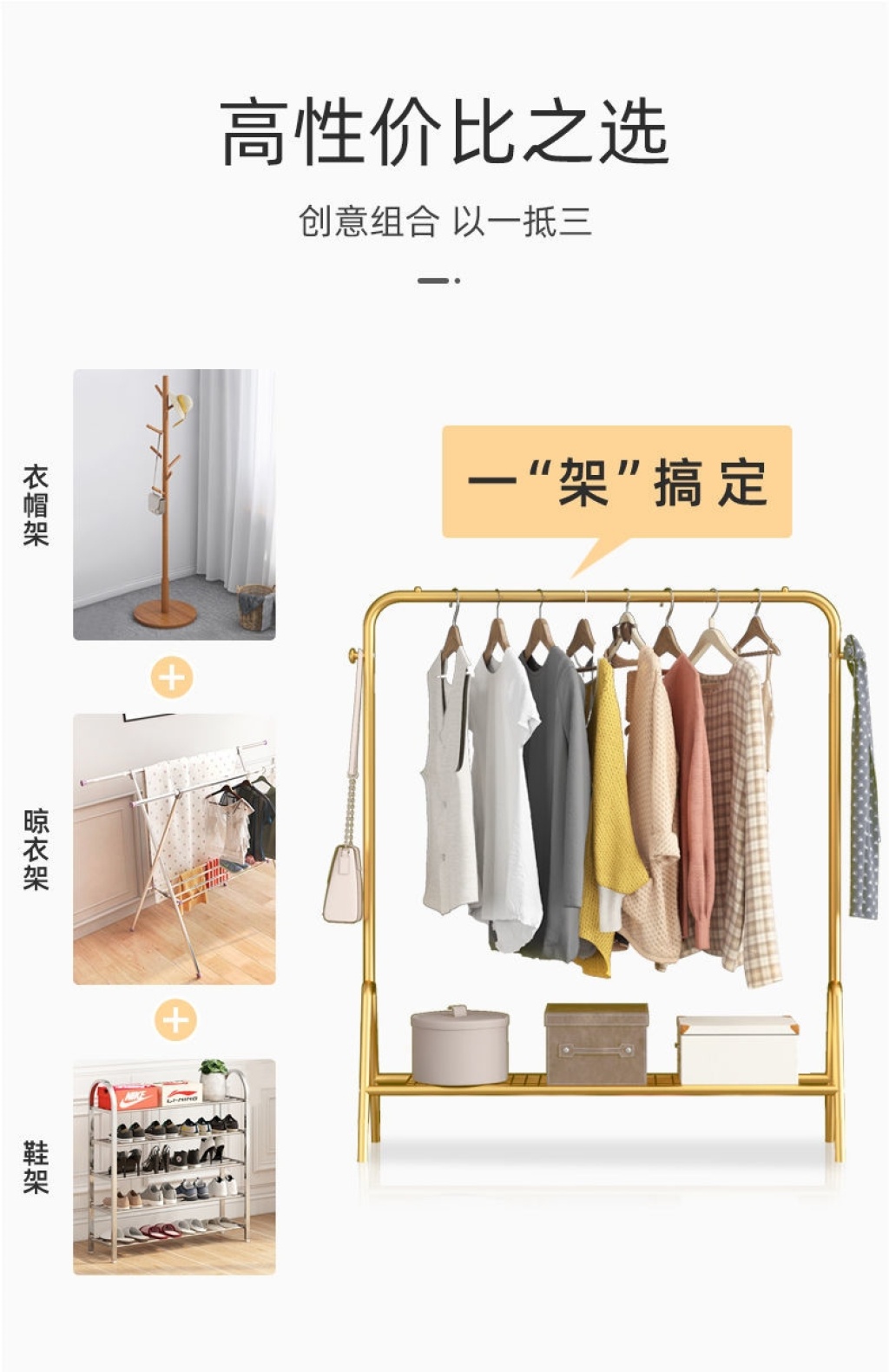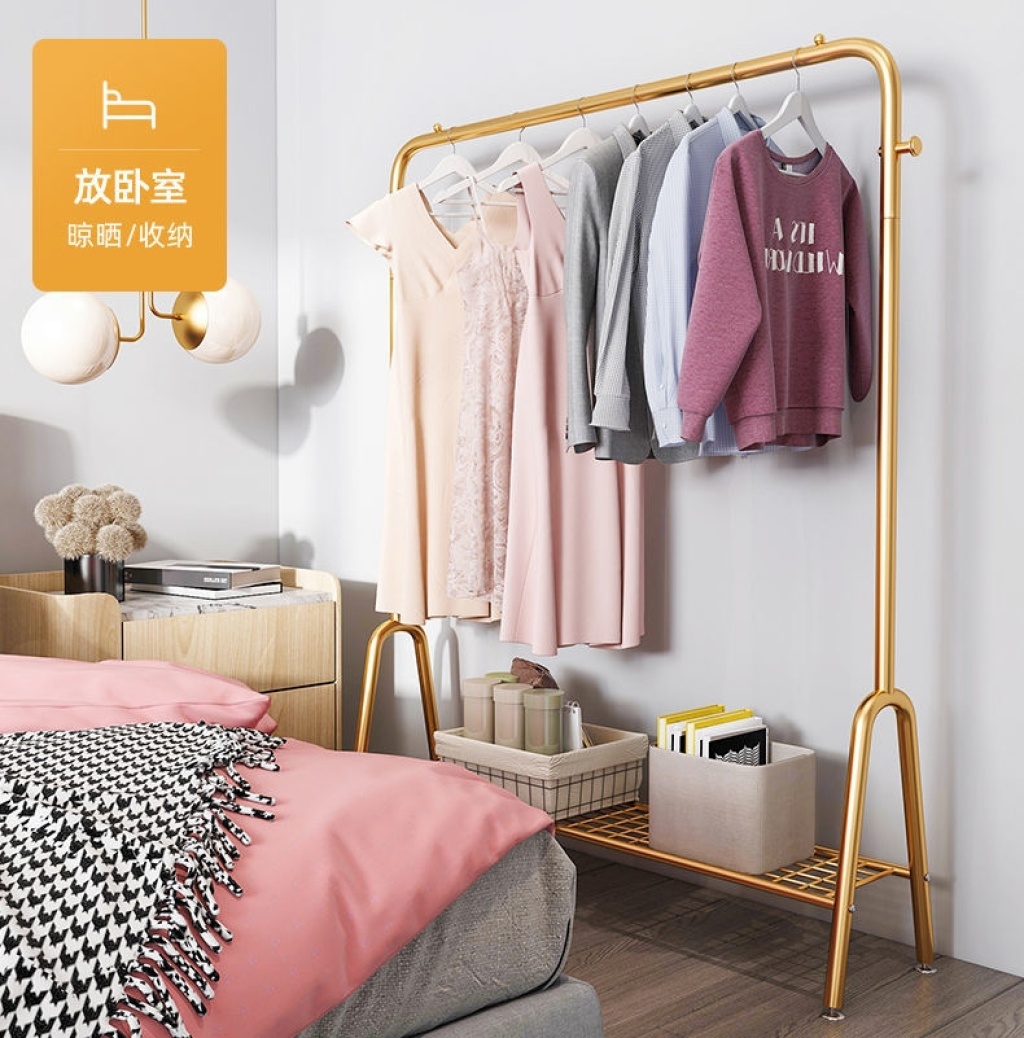 Light Luxury Clothes Rack Household Floor Coat Rack Balcony Clothes Rack Bedroom Internal Net Red Single Rod Simple Clothes Rack