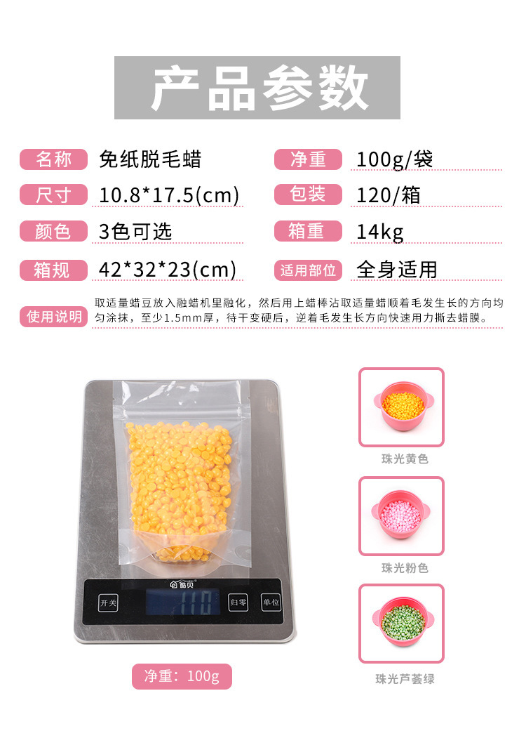 no rosin low sensitivity hair removal wax bean hot wax paper-free pearlescent wax beans