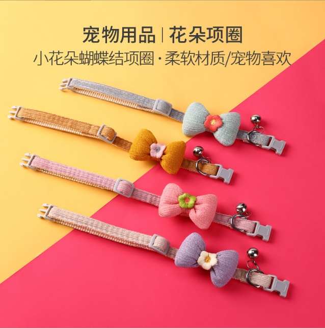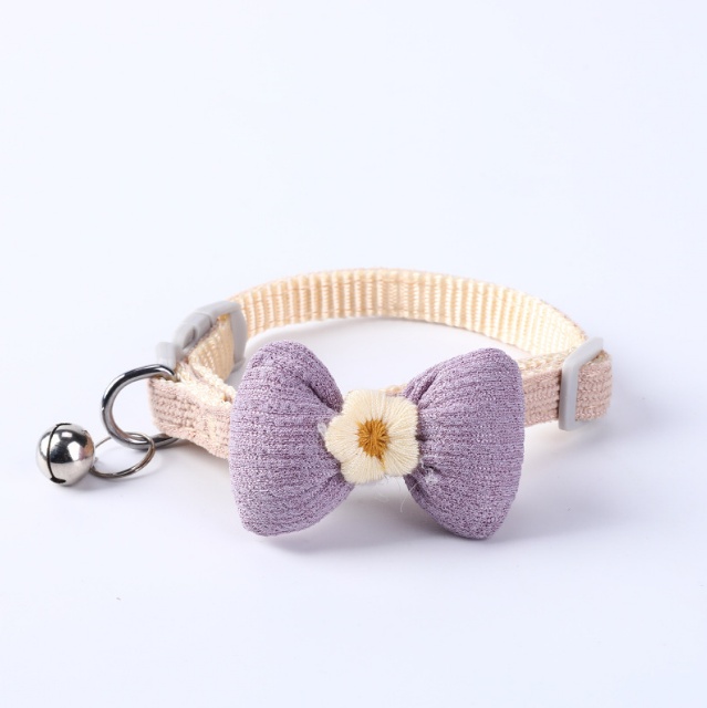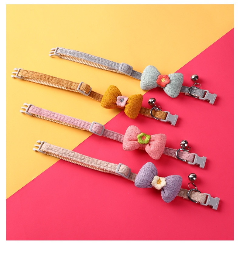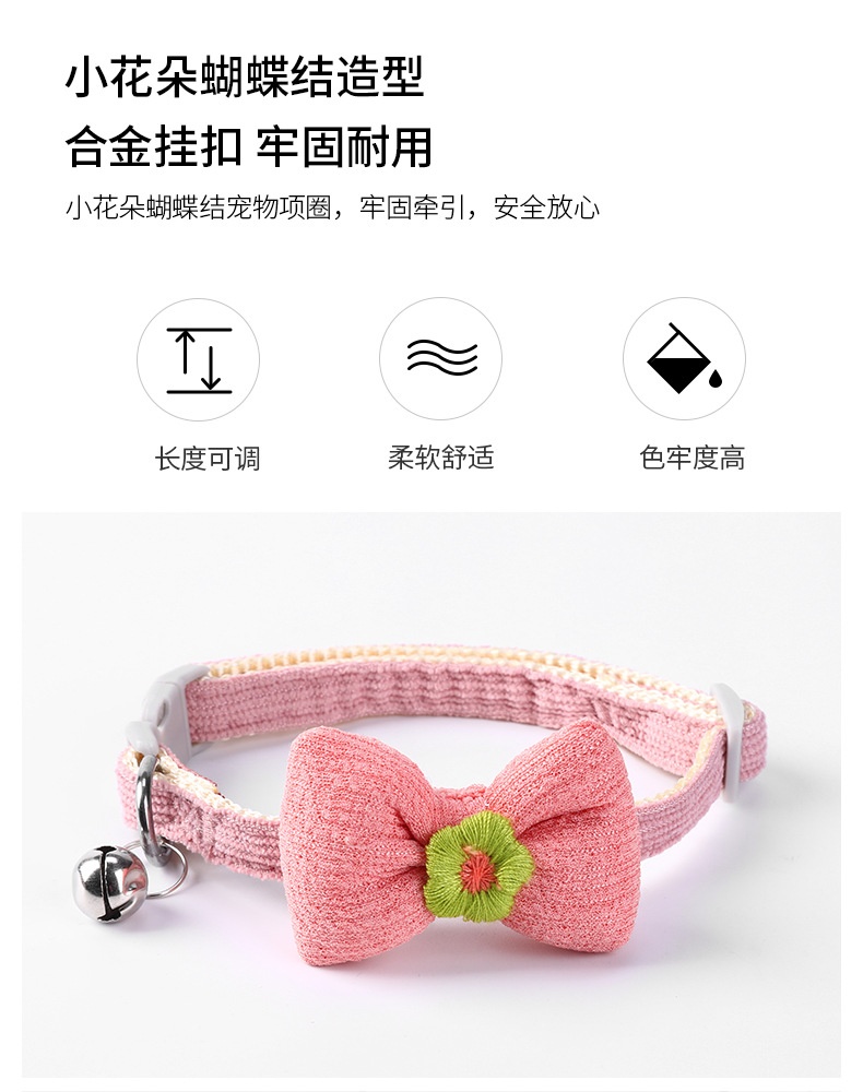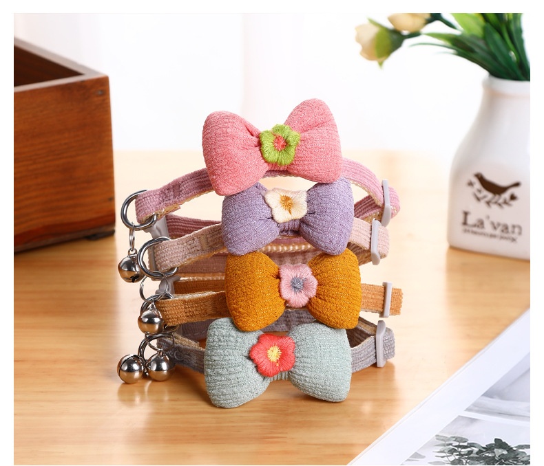 New Adjustable Woven Pet Collar Bow Decoration Cat Collar Little Flower Bell Cat Collar