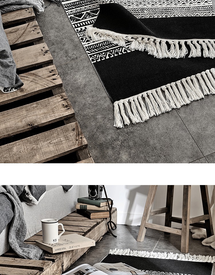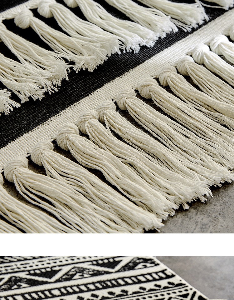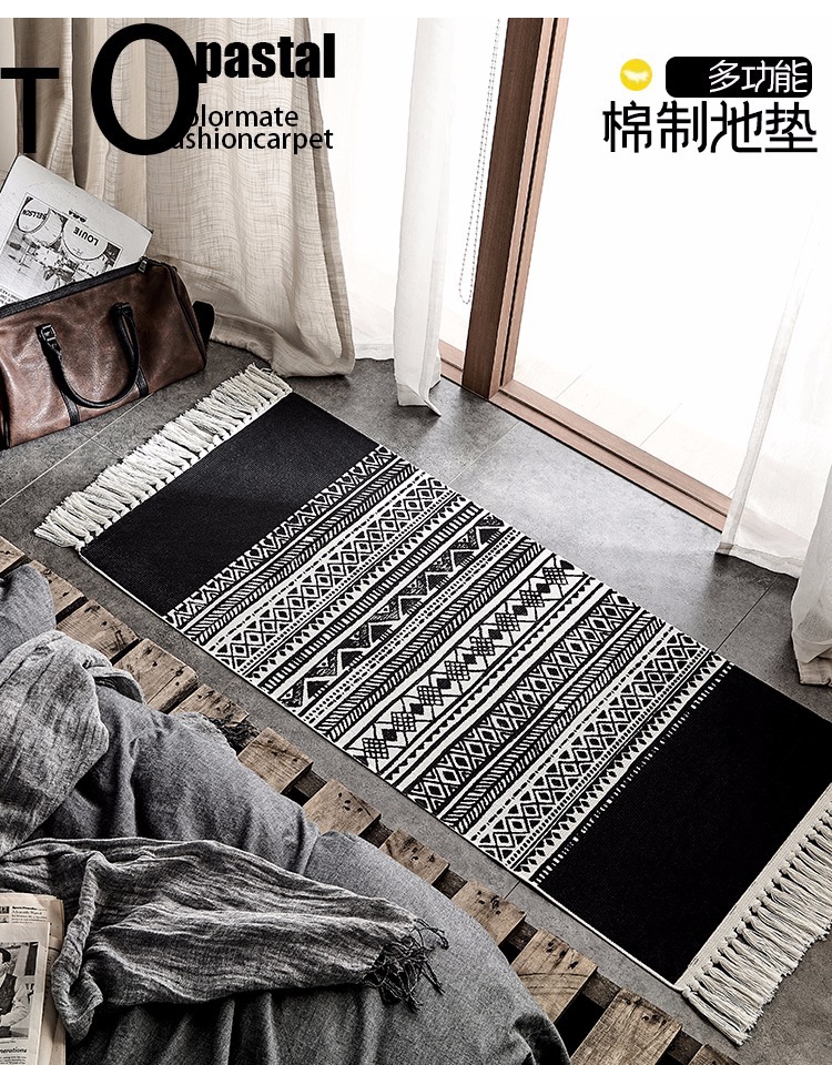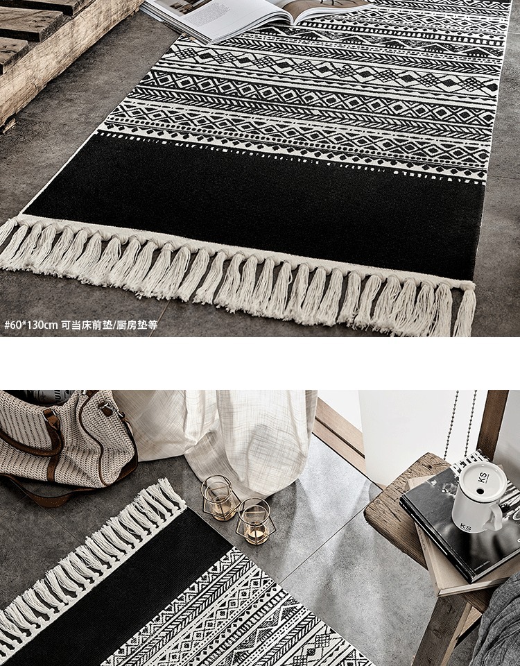 Moroccan Cotton Hand-Woven Floor Mat Black and White Bedroom Bedroom Rug Nordic Non-Slip Carpet