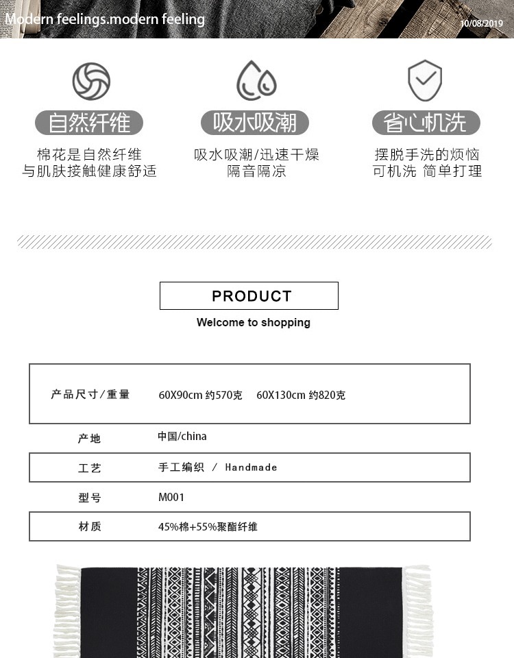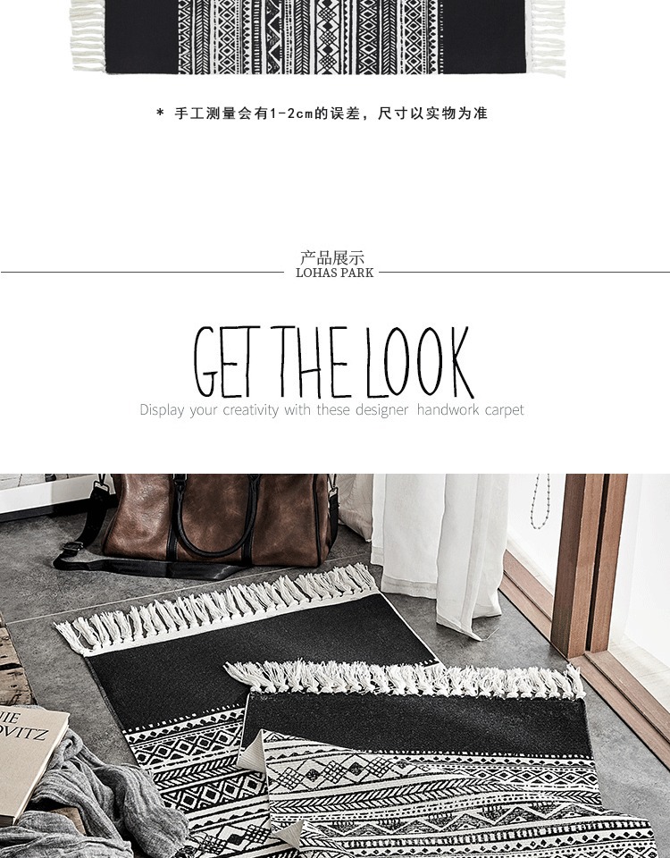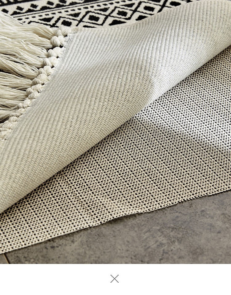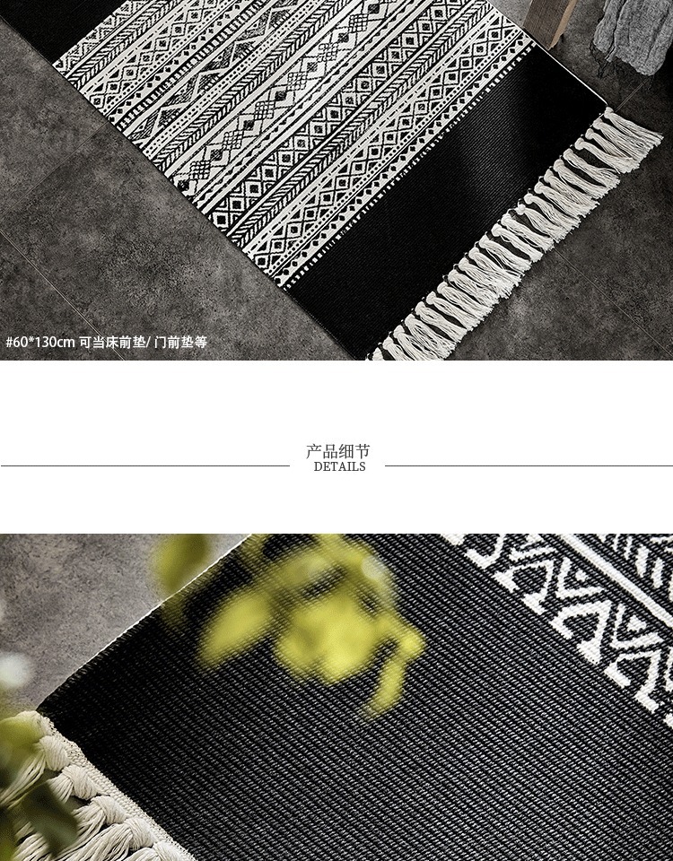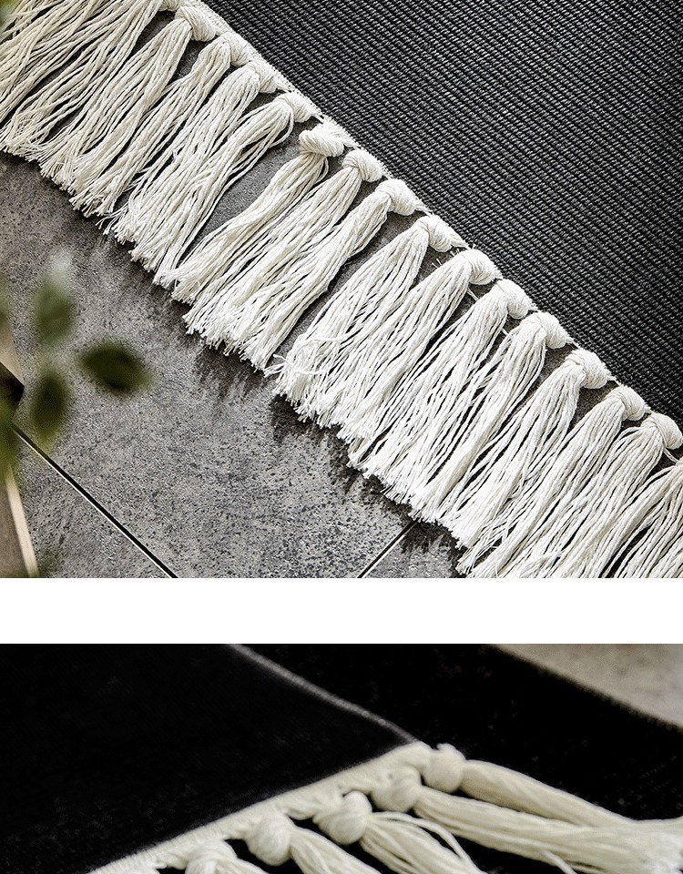 Moroccan Cotton Hand-Woven Floor Mat Black and White Bedroom Bedroom Rug Nordic Non-Slip Carpet