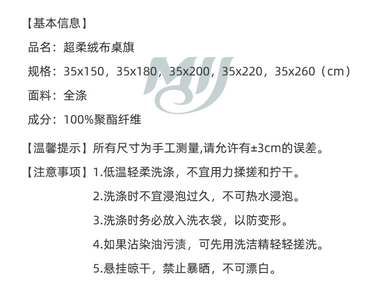 | Dousen ultra-soft flannel printed edge table runner | 35x150 | Approximately 240 grams | 50x40x40 | 60 | Single Zipper Pouch Packaging |