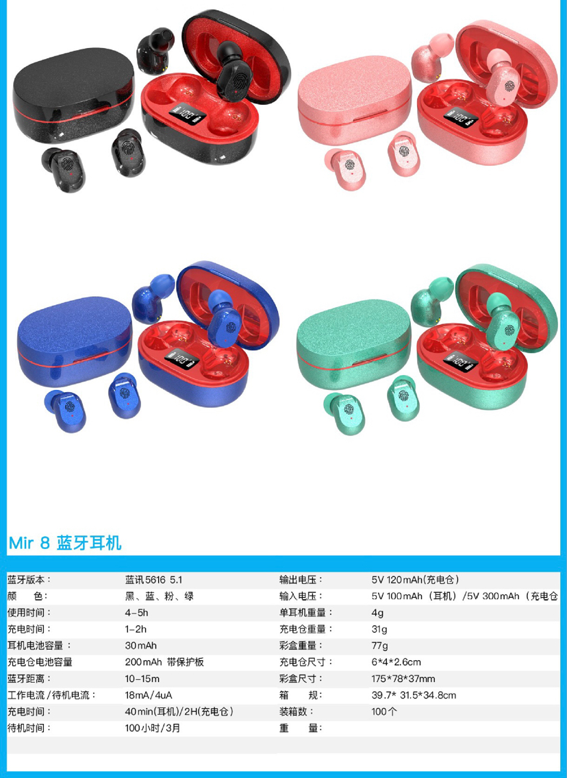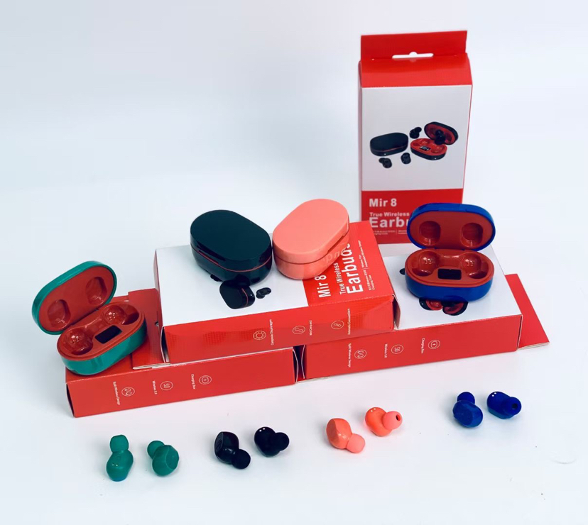 Cross-Border New Arrival Mir8 Wireless Binaural Noise Reduction TWS Mini Sports Full Touch Digital Display Game 5.1 Bluetooth Headset