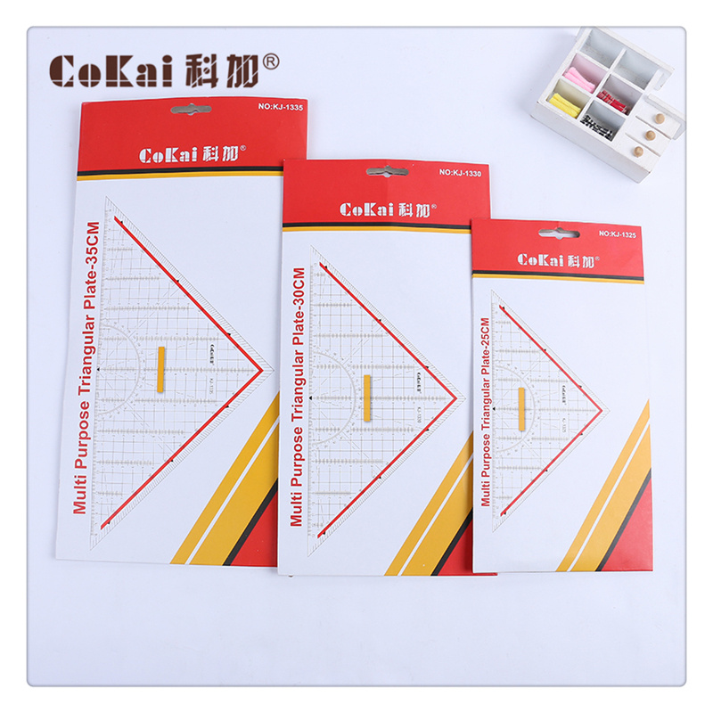 Main products: student office sets of measuring tools, Kega T-squares, templates, scale rules, and protractors.
