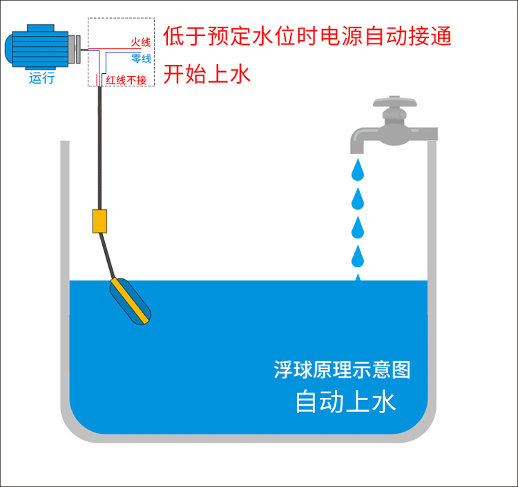 Float Switch Liquid Level Controller Water Level Water Pump Automatic Water Supplement Tower Valve with Line Plastic Square round Sensor