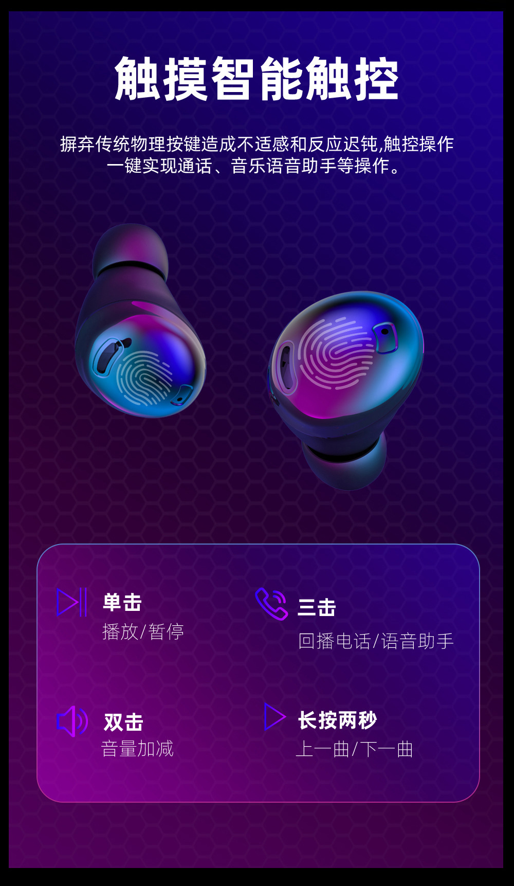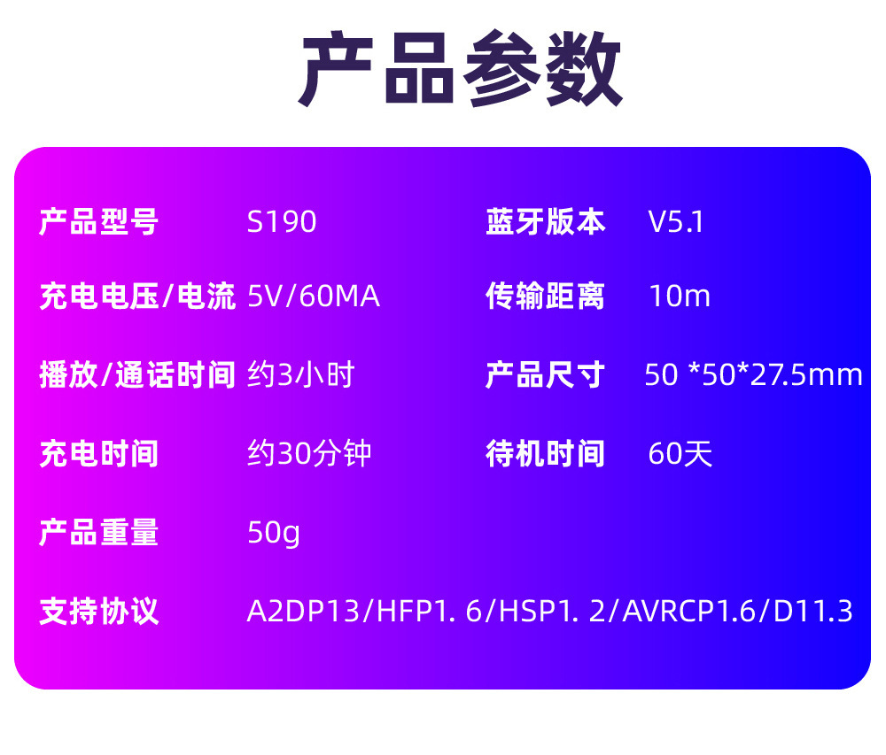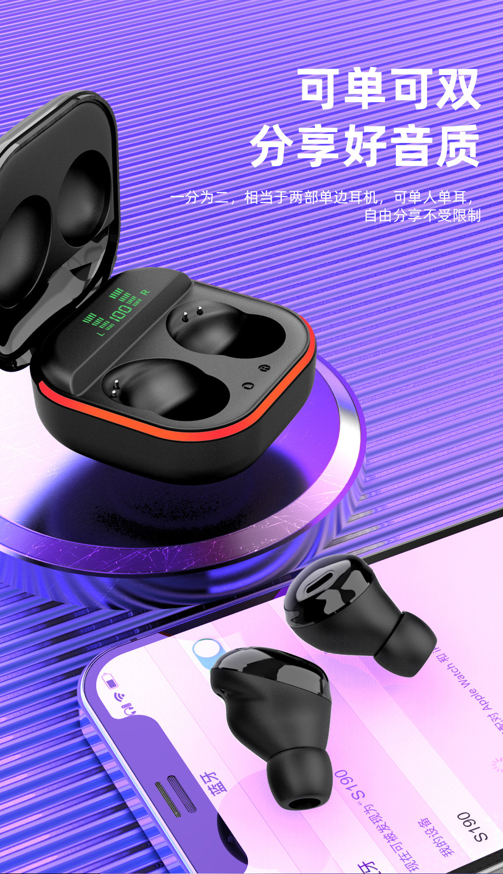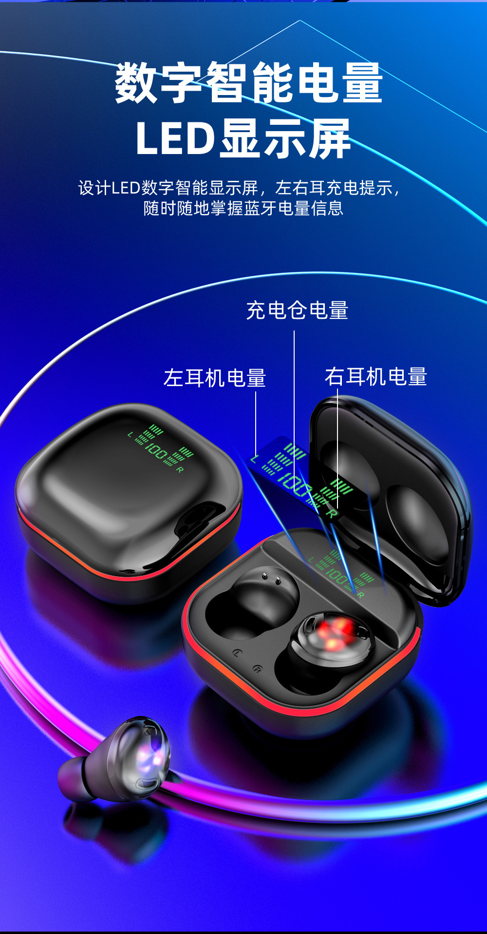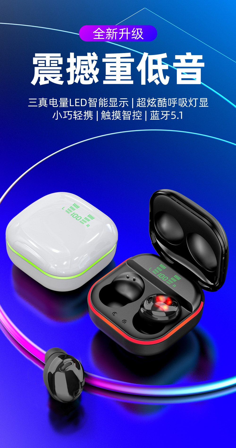 Cross-Border New Arrival Private Model S190 Touch Digital TWS Wireless Bluetooth Headset Compact Sports in-Ear LED Light