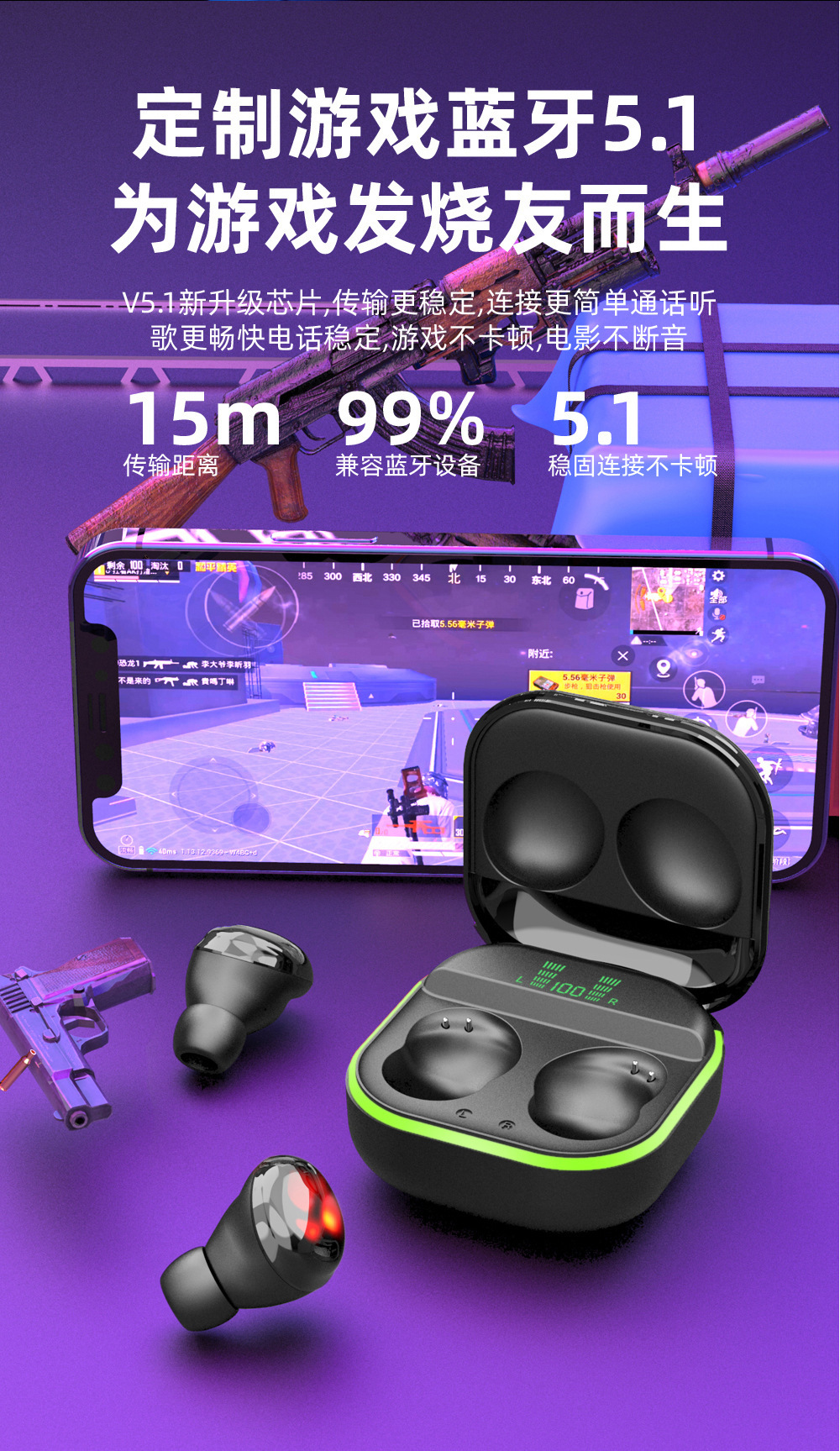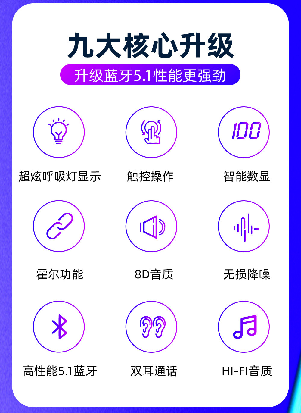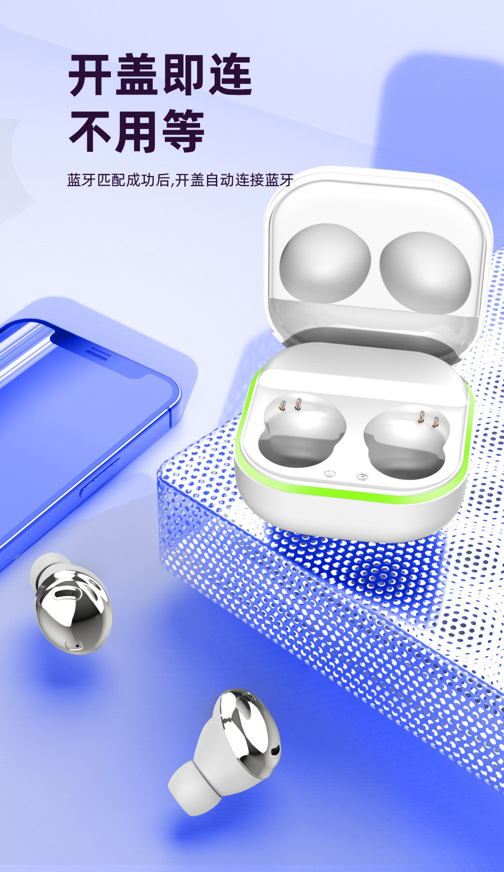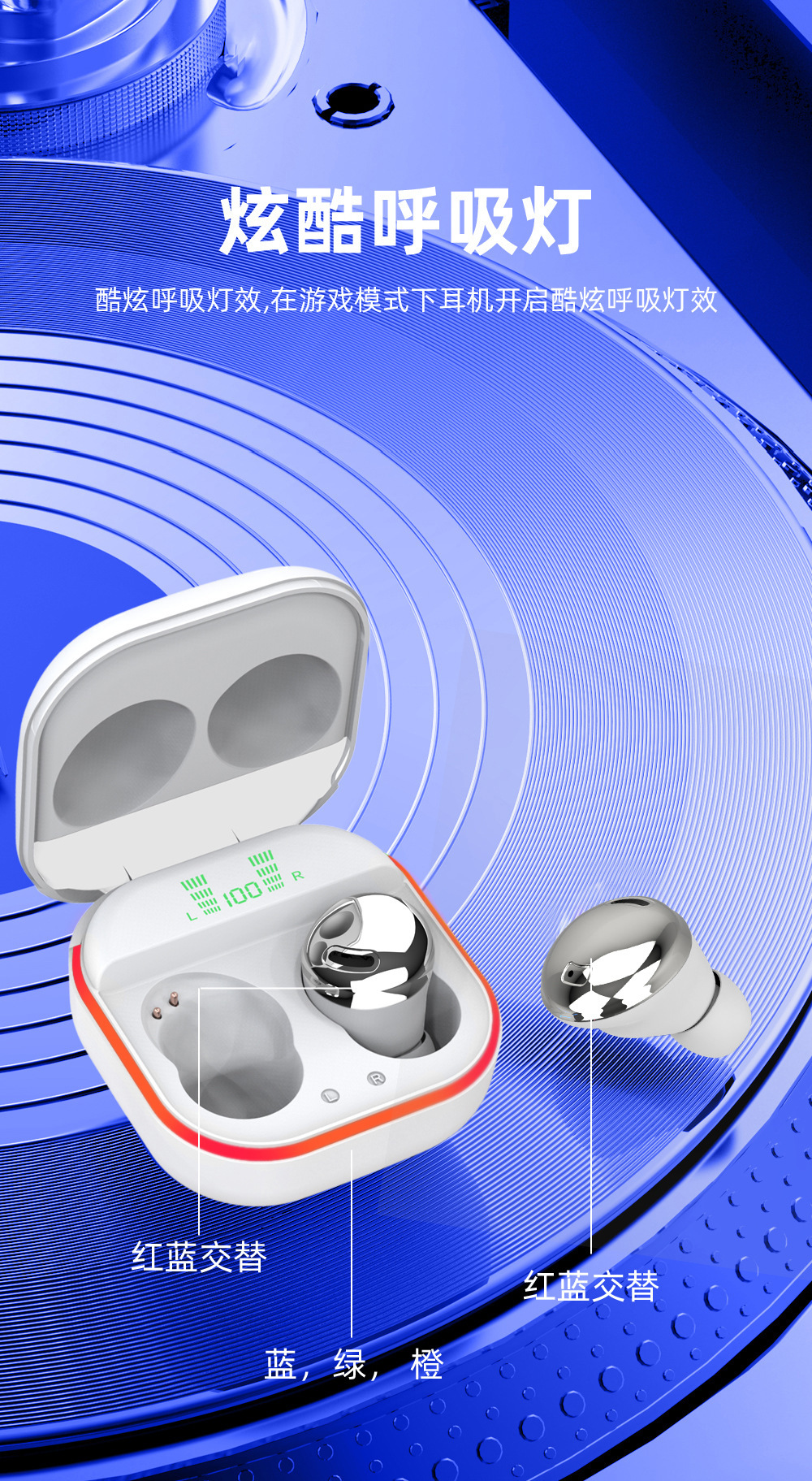 Cross-Border New Arrival Private Model S190 Touch Digital TWS Wireless Bluetooth Headset Compact Sports in-Ear LED Light