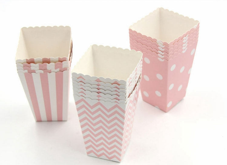 popcorn box pink fresh striped dot striped corrugated food packaging white cardboard snack packaging box