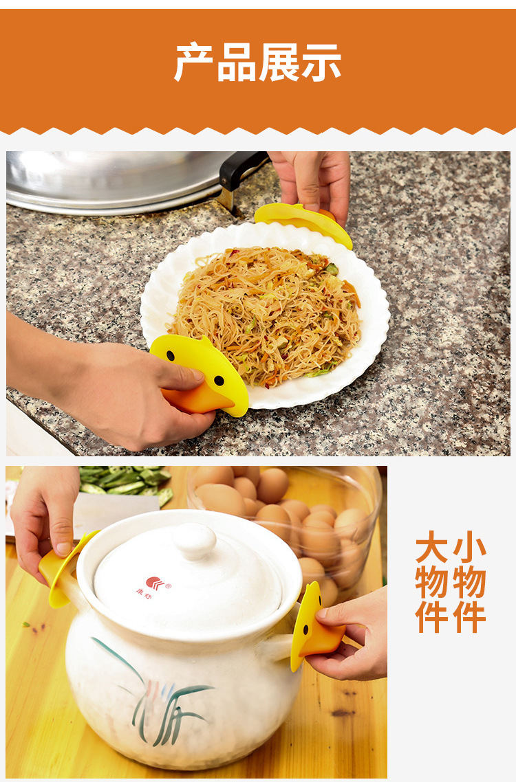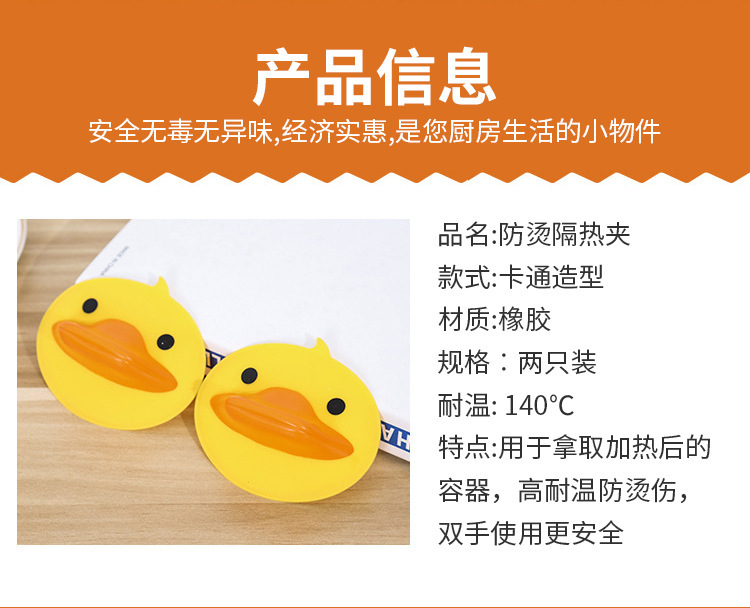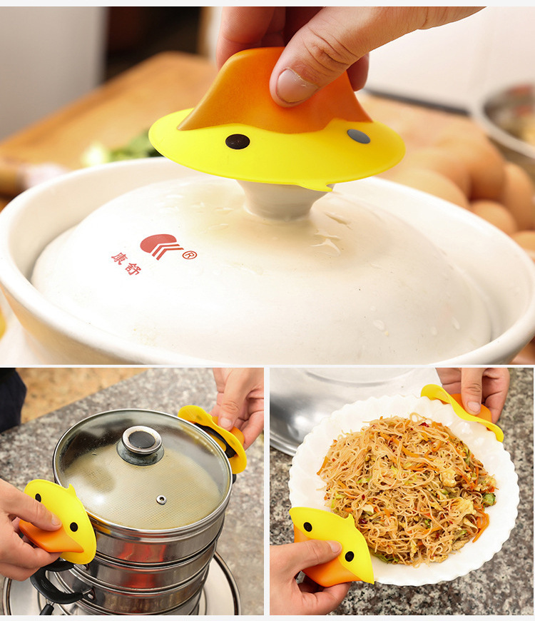 factory direct sales creative kitchen small yellow duck silicone anti-scalding clip duckbill heat proof mat insulation sleeve