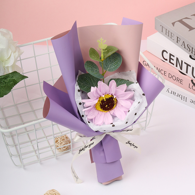 single sunflower bouquet purple: plus light