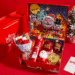 red delicious apple + perfume + chocolate + santa claus + flowers