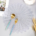 The etched placemat is mainly made of high-quality PVC, which has a series of advantages such as wear resistance, oil resistance, and flame retardancy. The placemat is mainly designed in a circular and rectangular shape, which can prevent cups and tableware from sliding and scalding the table surface when placed on the table. At the same time, it can also take into account the beauty of the dining table!